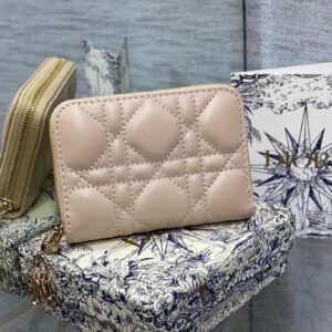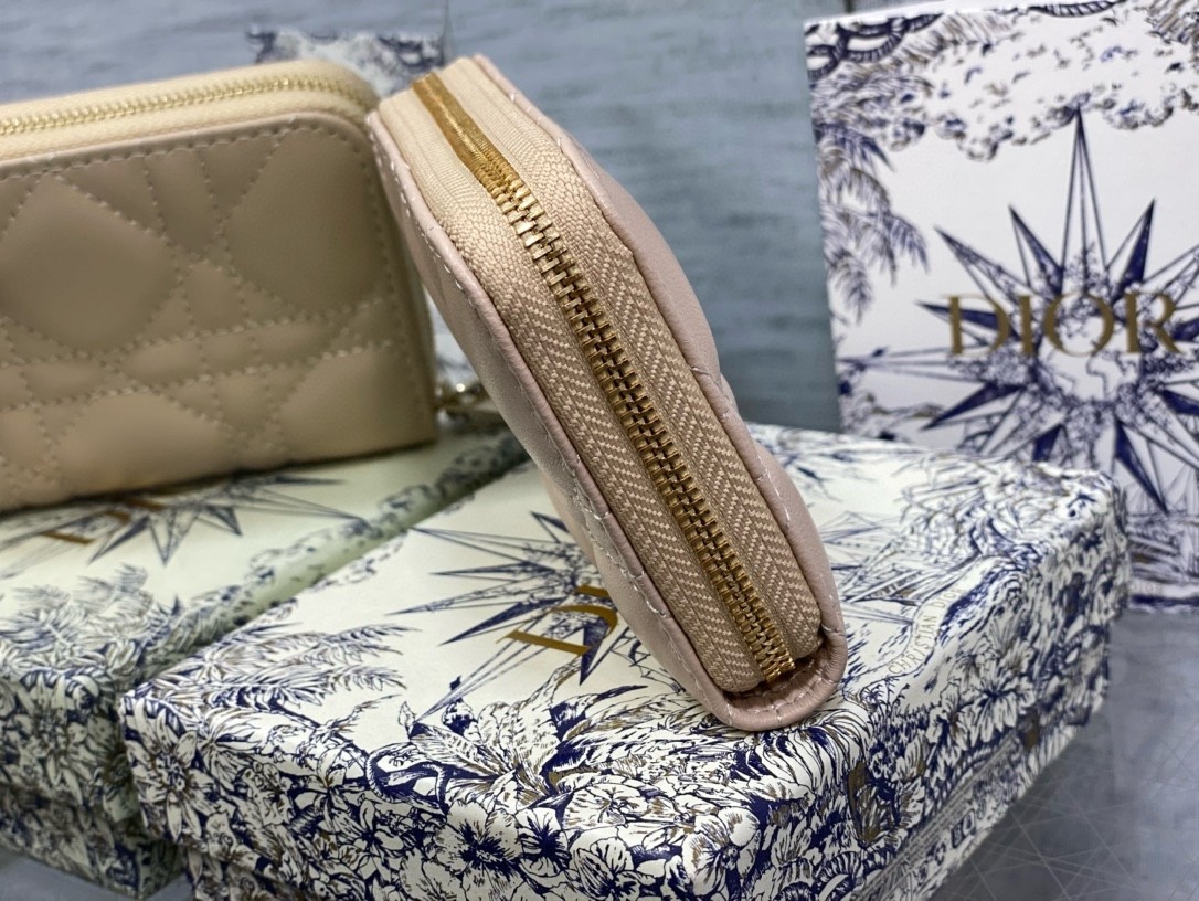 Dior Lady Dior Voyageur Small Coin Purse in Sand Lambskin