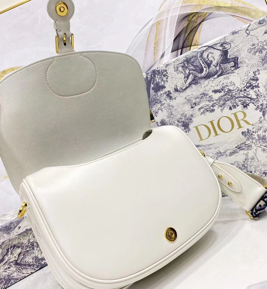 Dior Large Bobby Bag In White Calfskin
