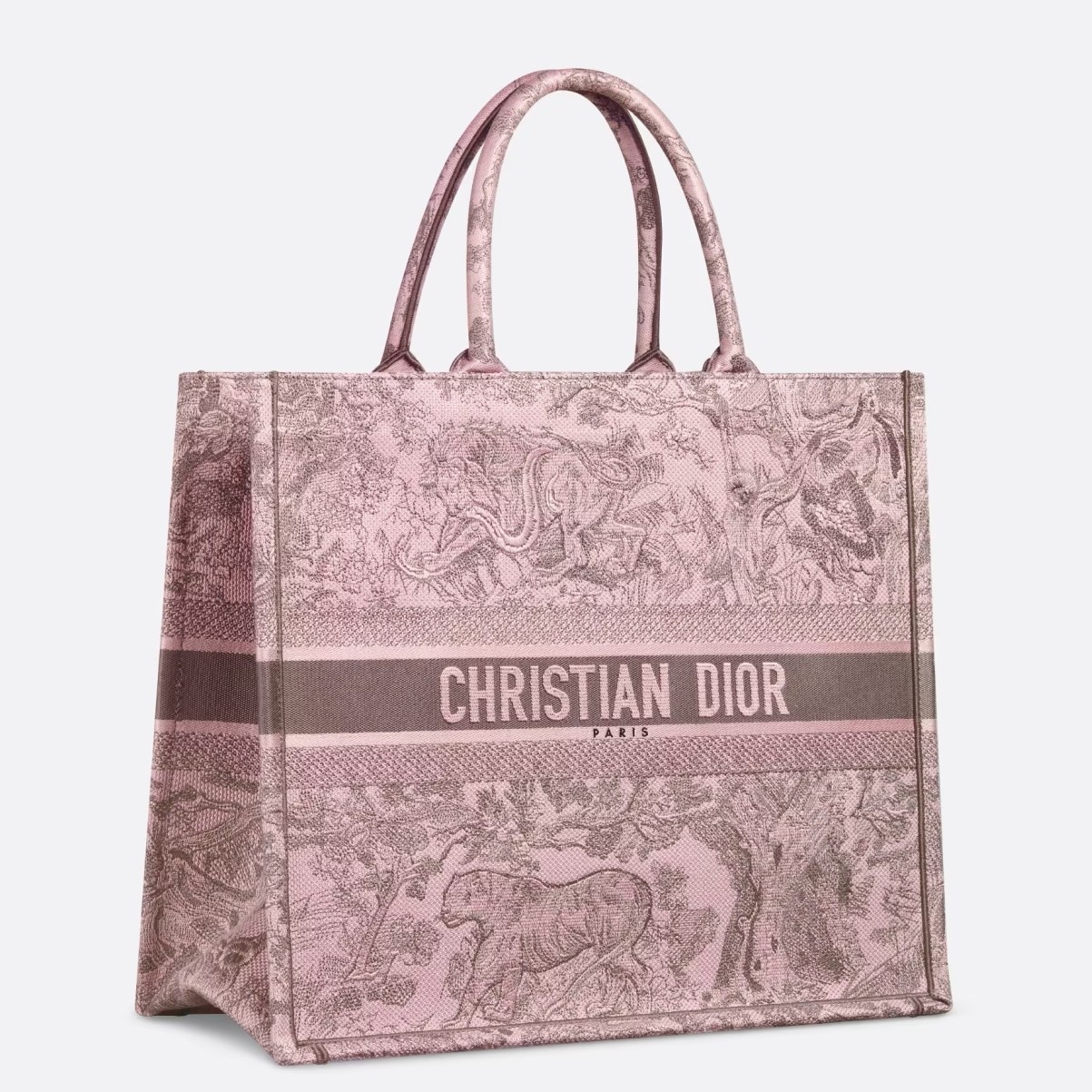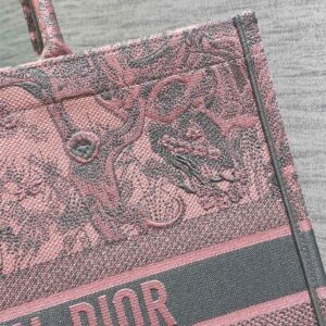 Dior Large Book Tote Bag in Pink and Gray Toile de Jouy Sauvage Embroidery