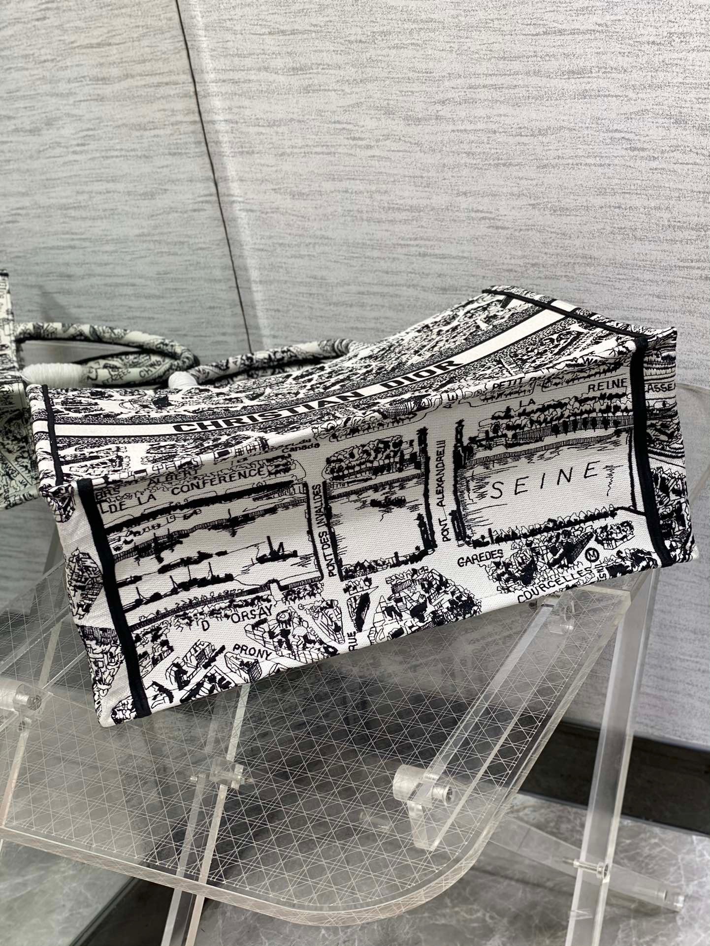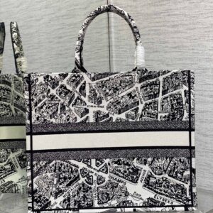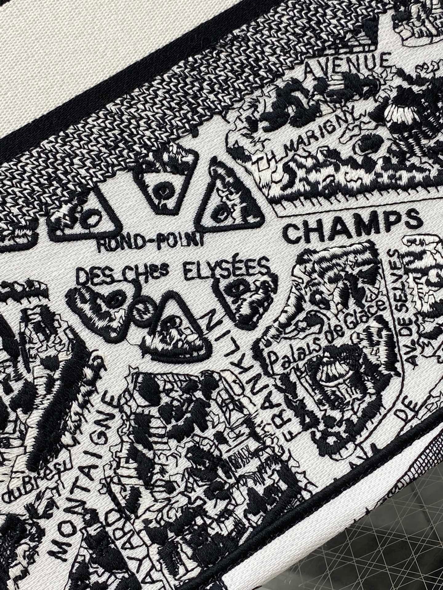 Dior Large Book Tote Bag In White Plan de Paris Embroidery