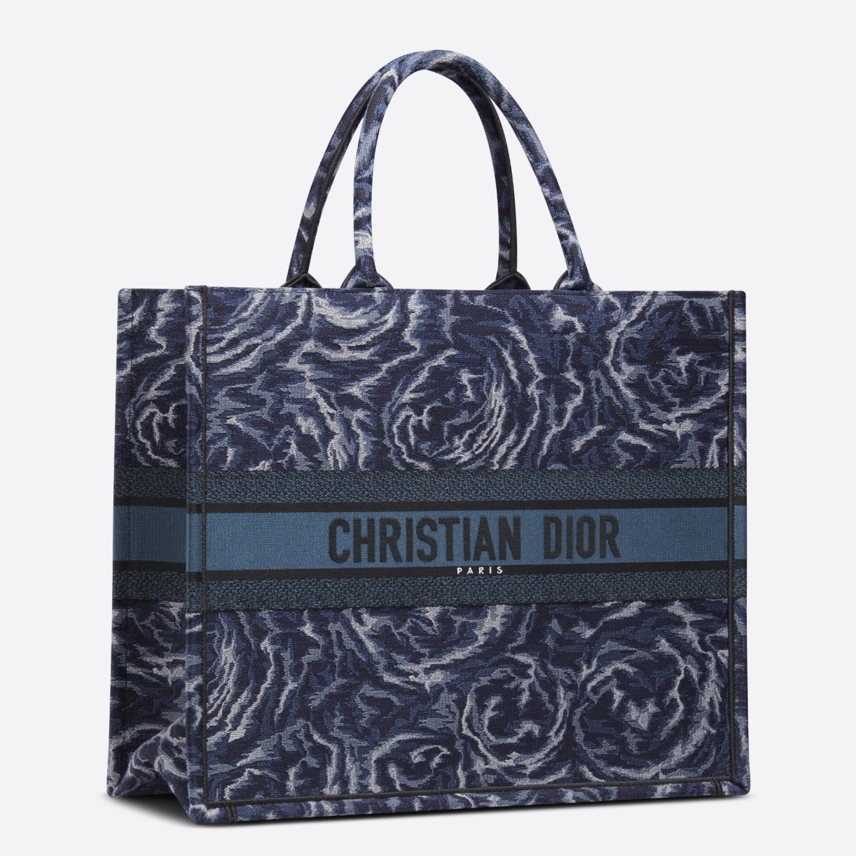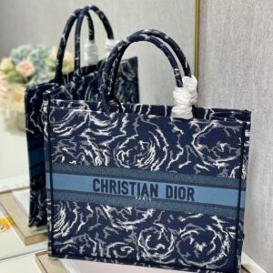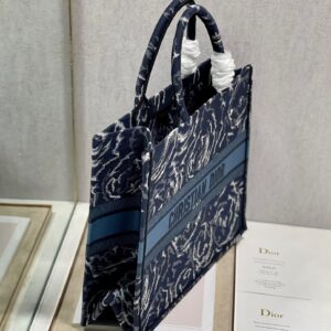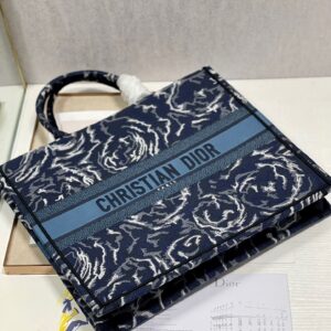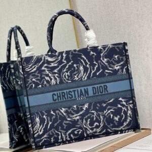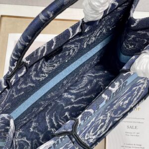 Dior Large Book Tote In Blue Dior Roses Embroidery