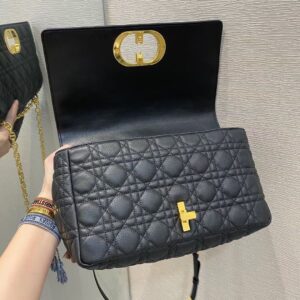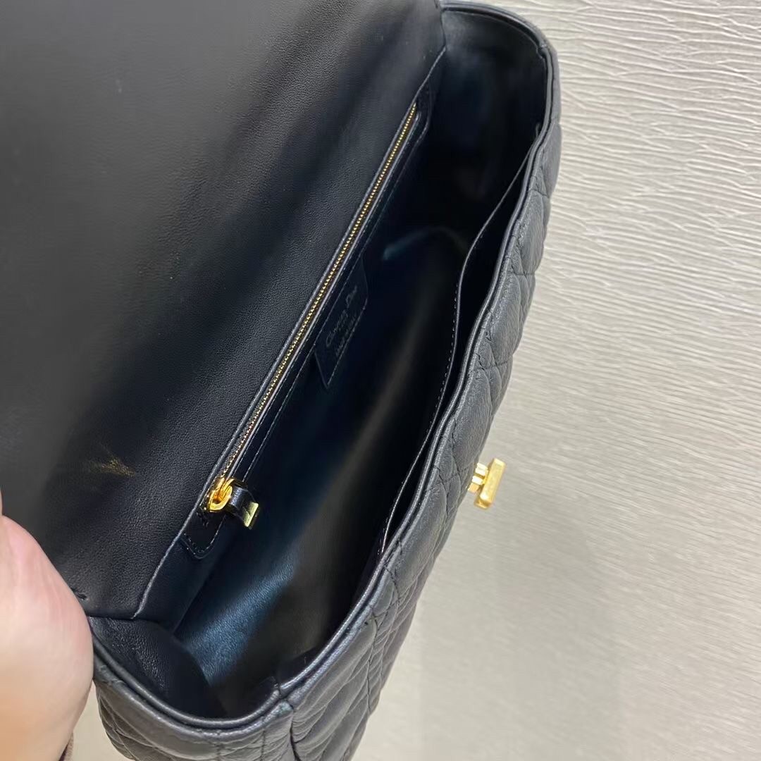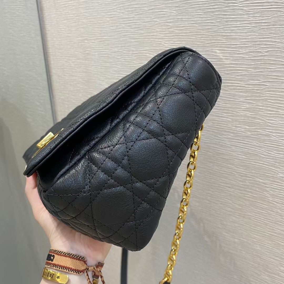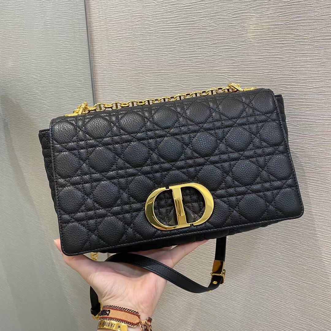 Dior Large Caro Bag In Black Cannage Calfskin