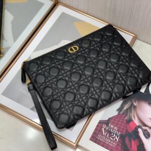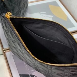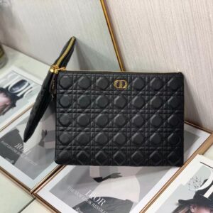 Dior Large Caro Daily Pouch In Black Calfskin