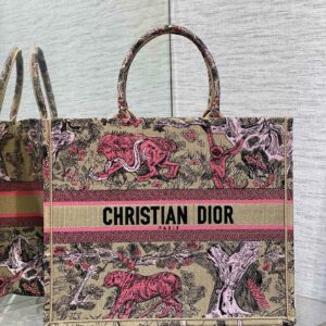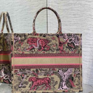 Dior Large Dioriviera Book Tote in Raffia with Pink Toile de Jouy Sauvage Embroidery
