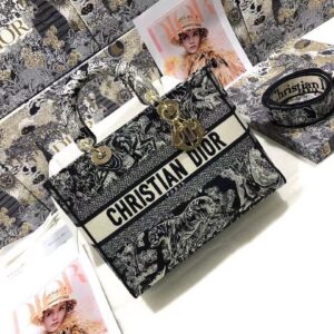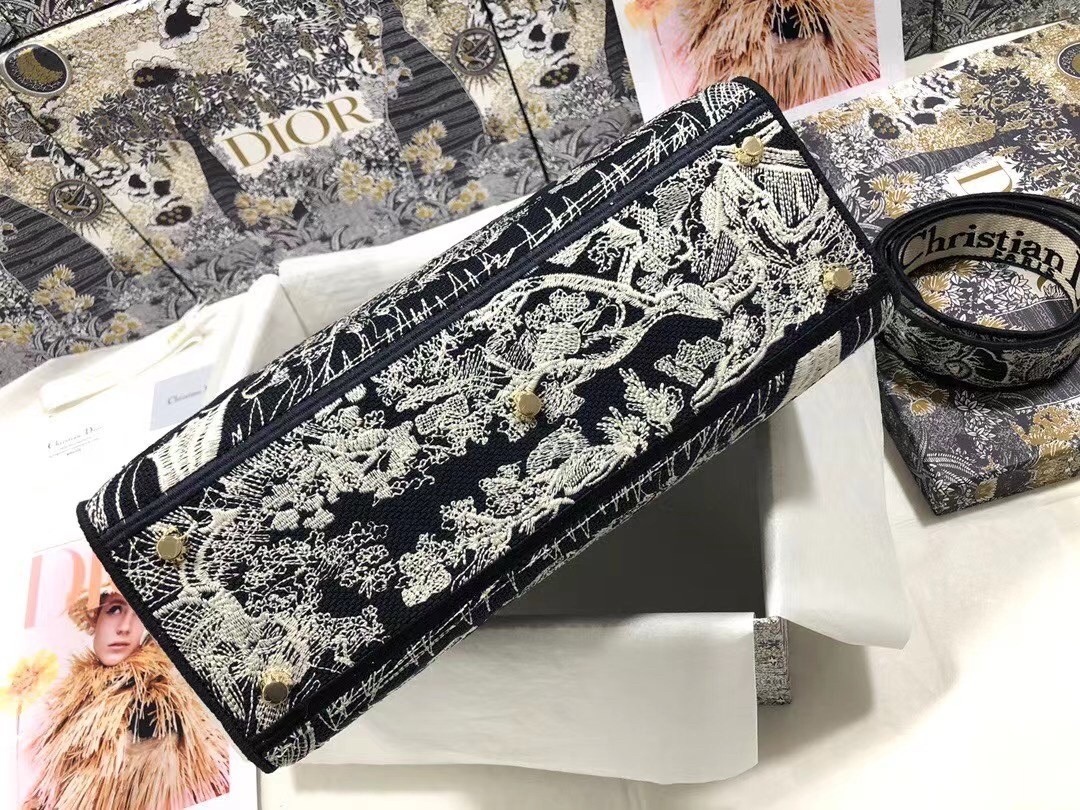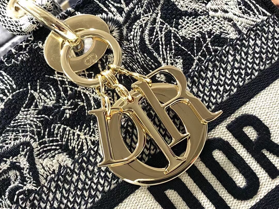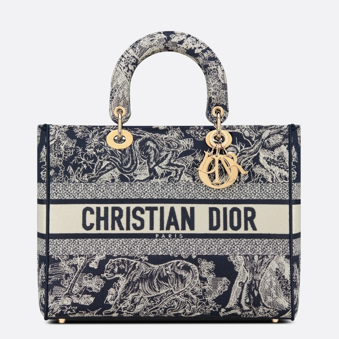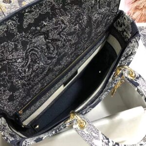 Dior Large Lady D-Lite Bag In Blue Toile de Jouy Reverse Embroidery