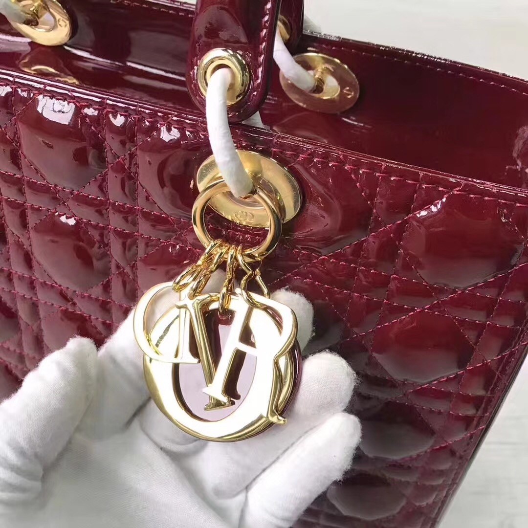 Dior Large Lady Dior Bag In Bordeaux Patent Leather
