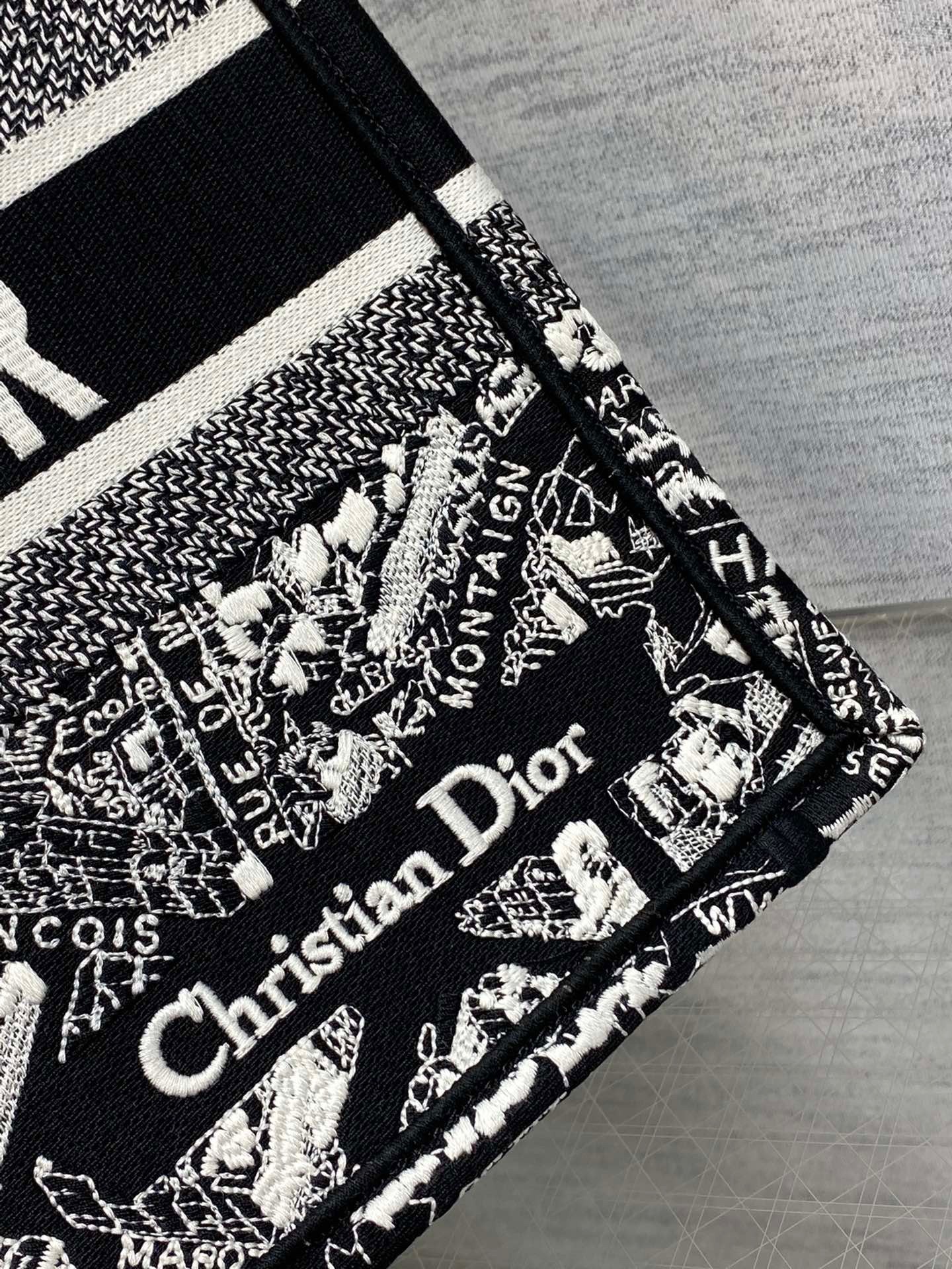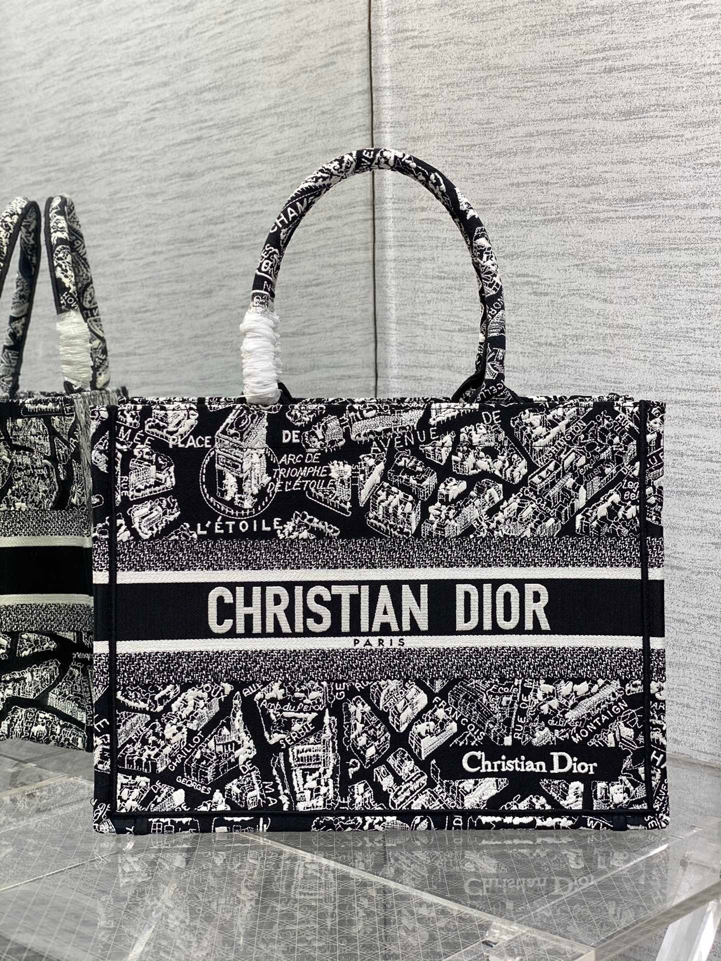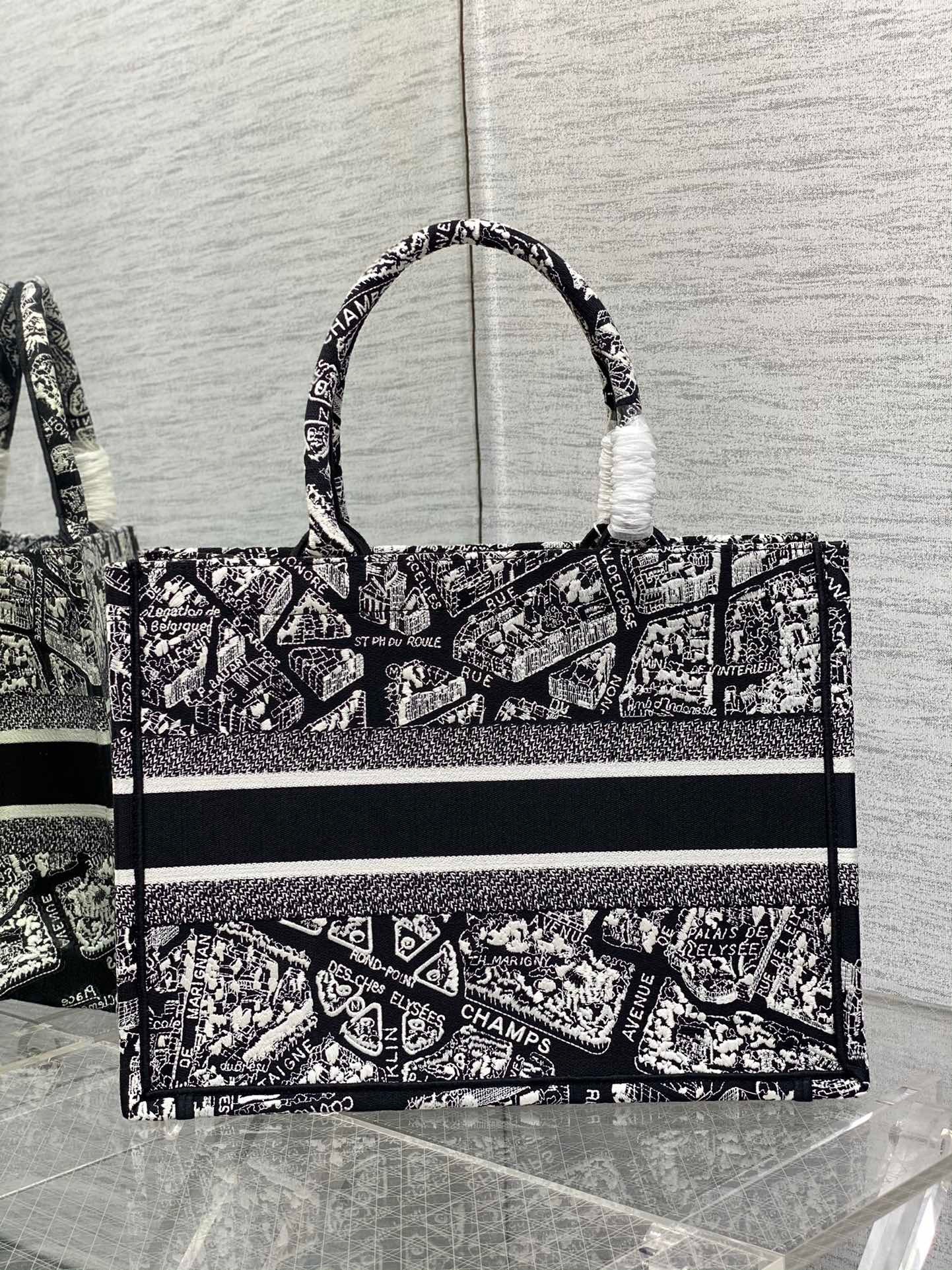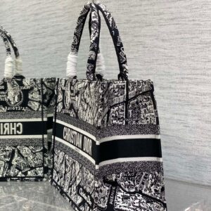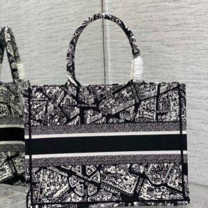 Dior Medium Book Tote Bag In Black Plan de Paris Embroidery