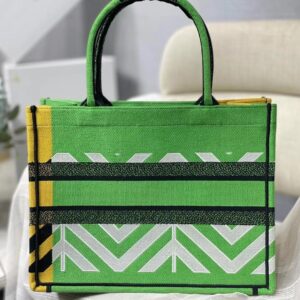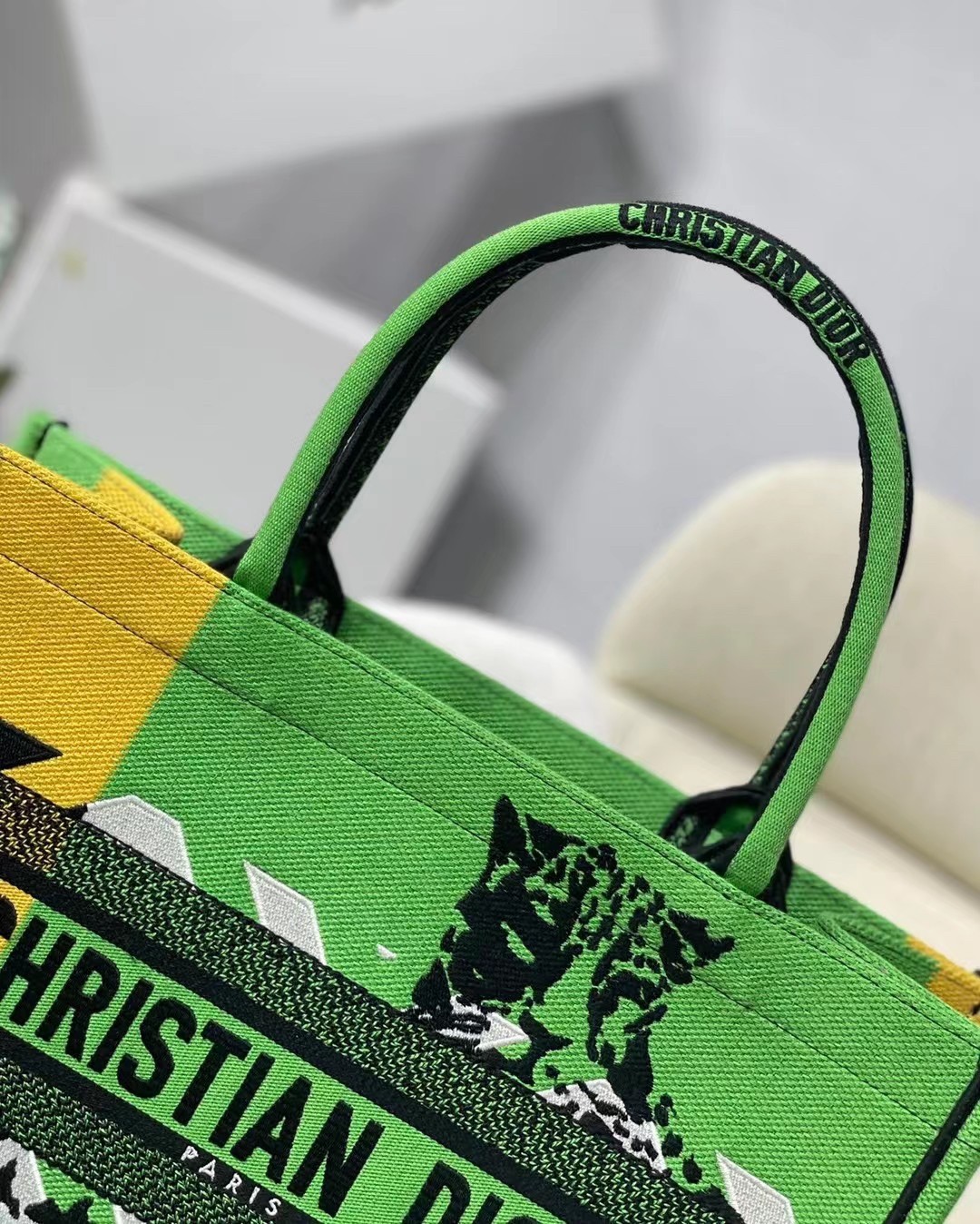 Dior Medium Book Tote Bag In Green D-Jungle Pop Embroidery