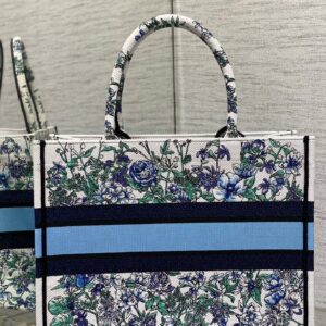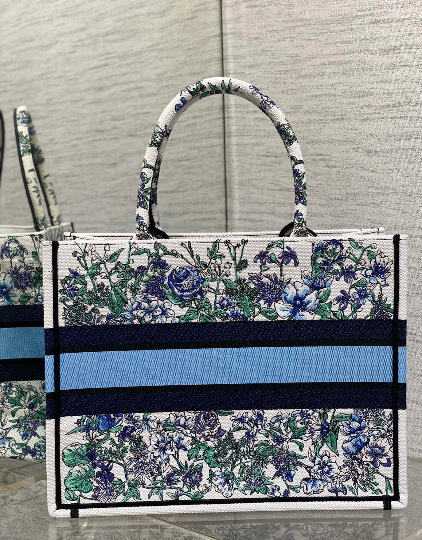 Dior Medium Book Tote Bag In Multicolor Flowers Constellation Embroidery