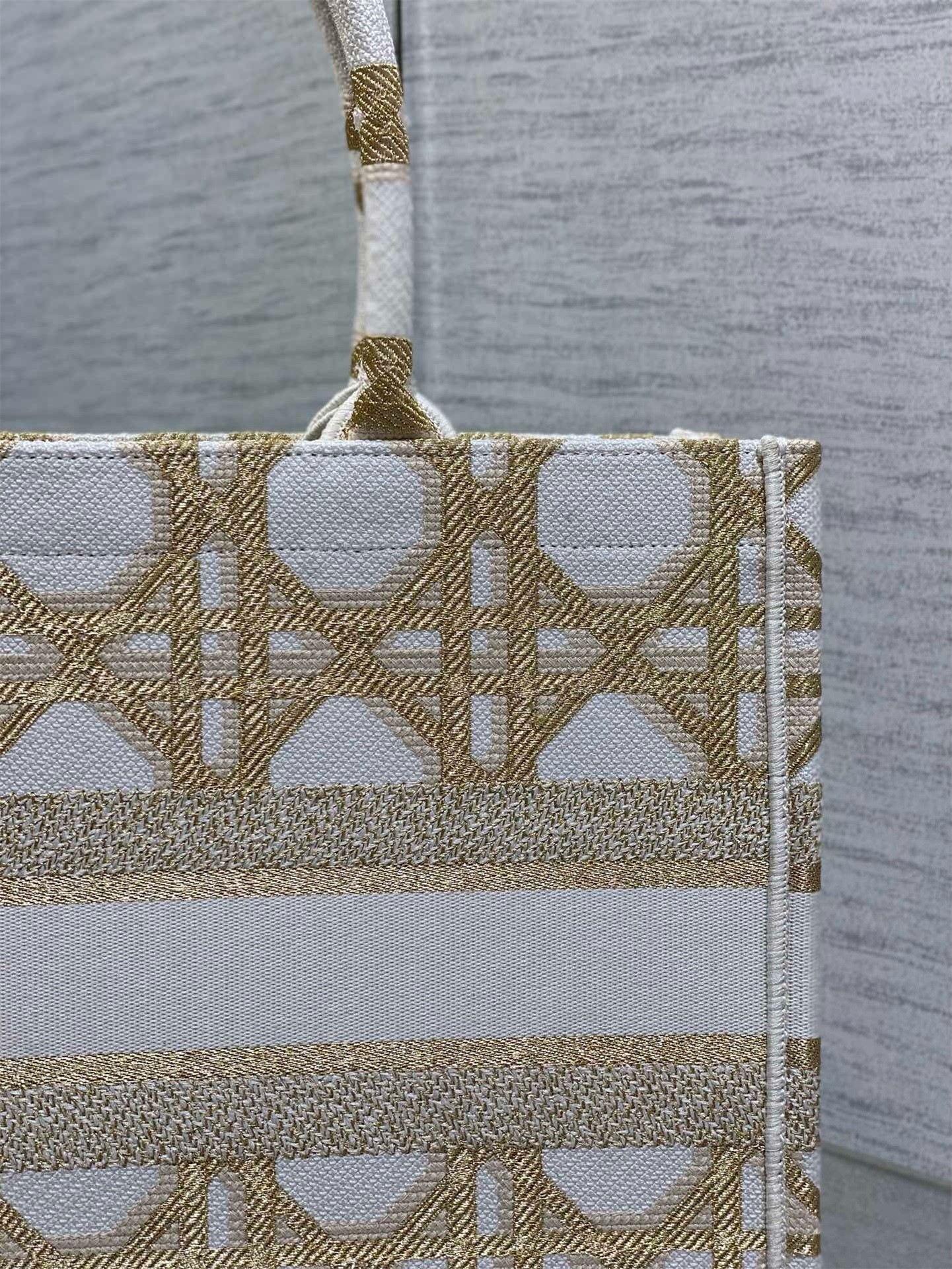 – White and Gold-Tone Macrocannage Embroidery
