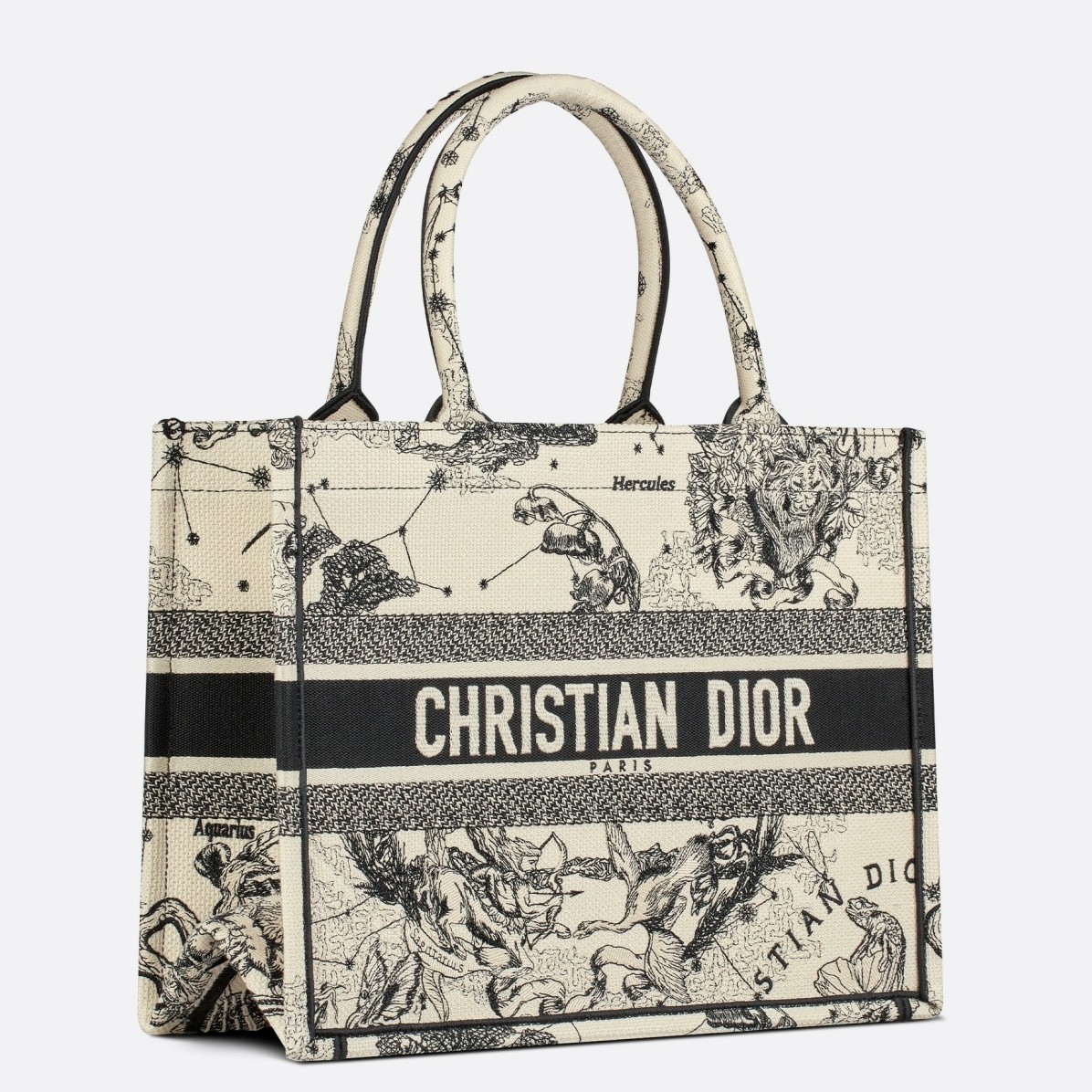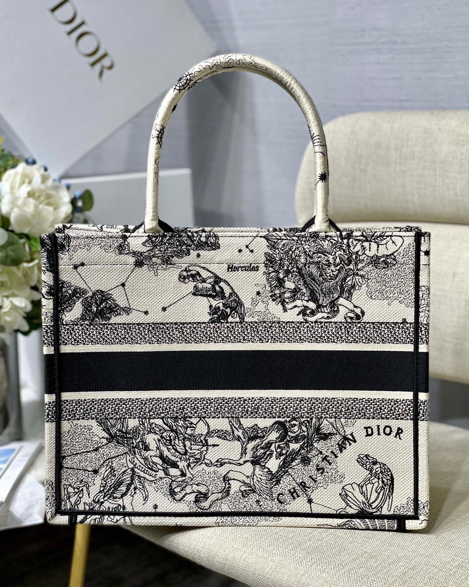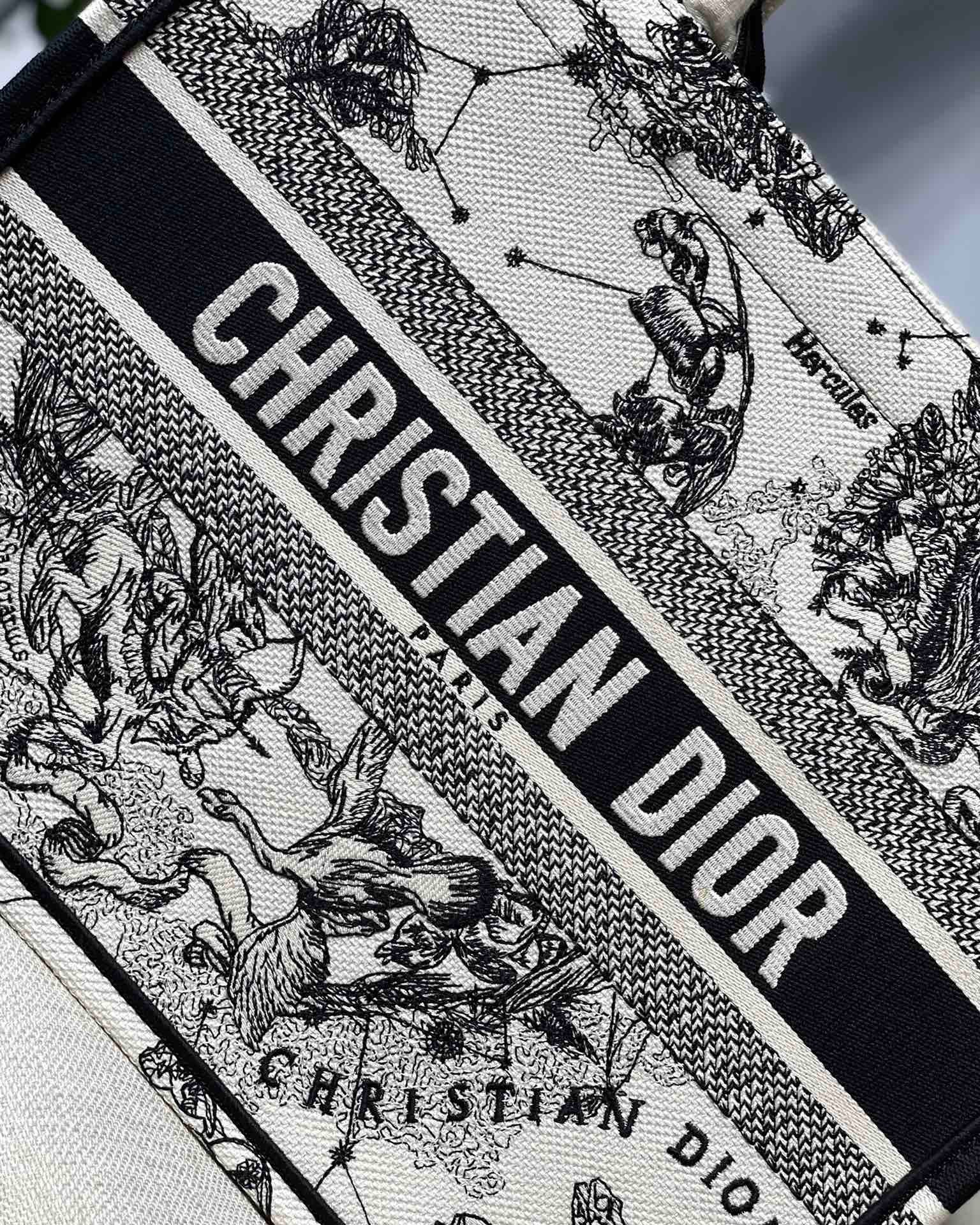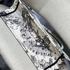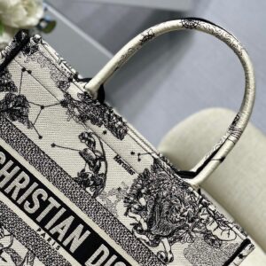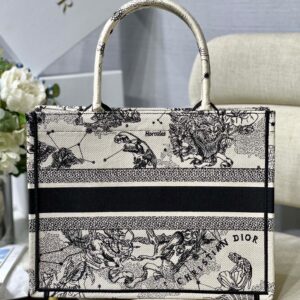 Dior Medium Book Tote Bag In White Toile de Jouy Zodiac Embroidery