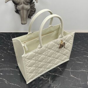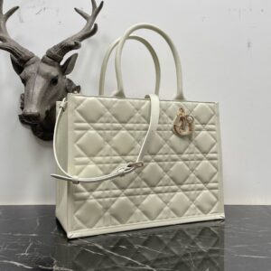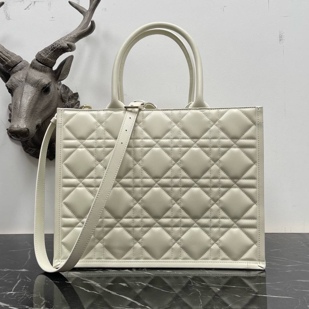 Dior Medium Book Tote Bag with Strap in White Macrocannage Calfskin