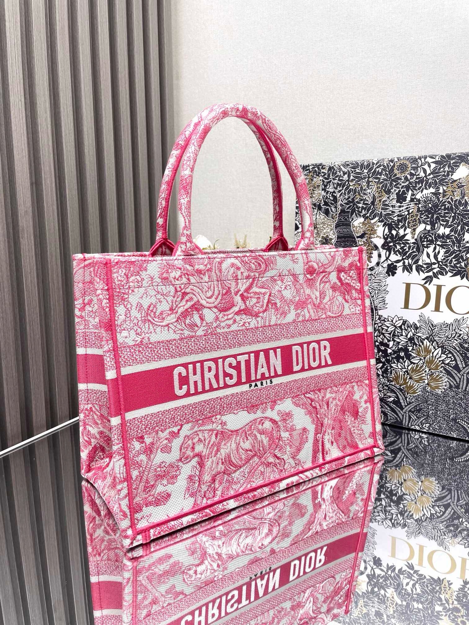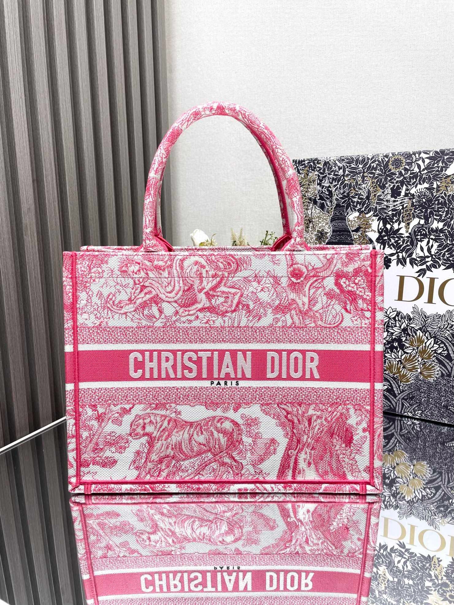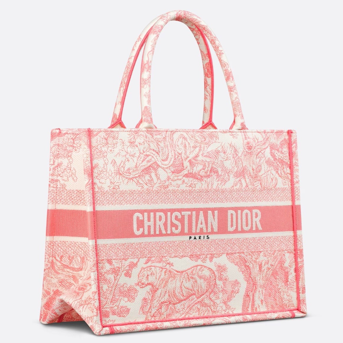 Dior Medium Dioriviera Book Tote in Pink Toile de Jouy Embroidery
