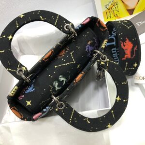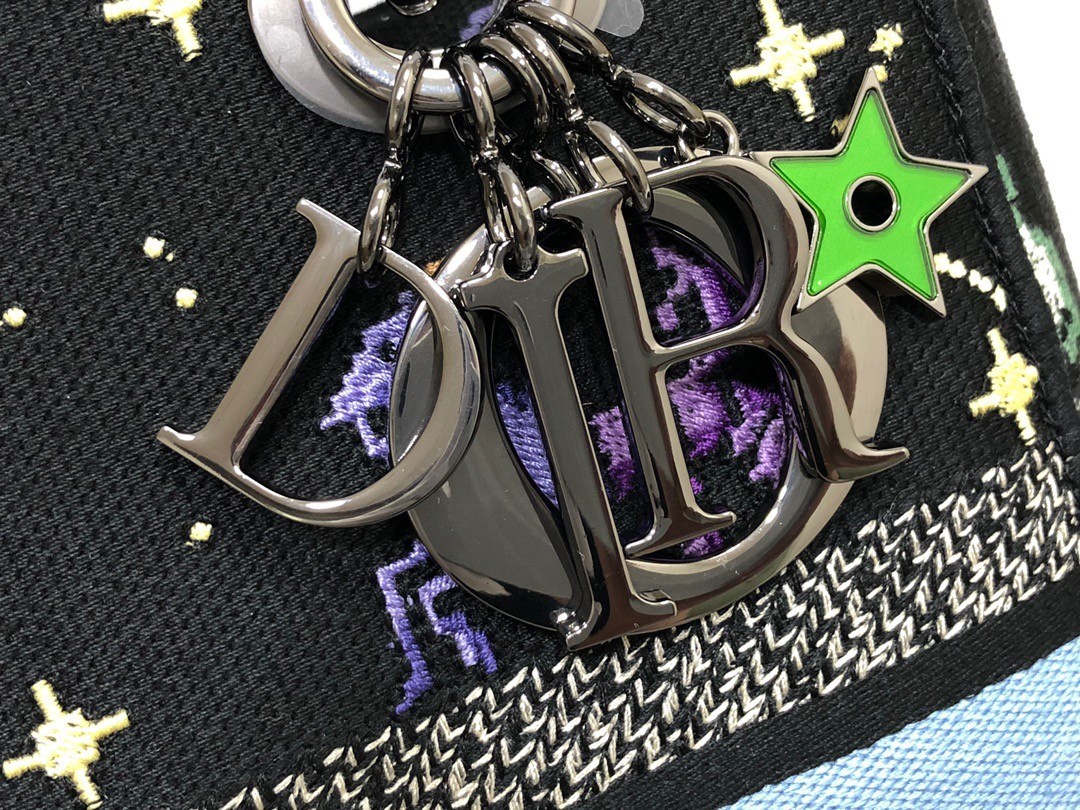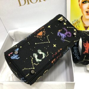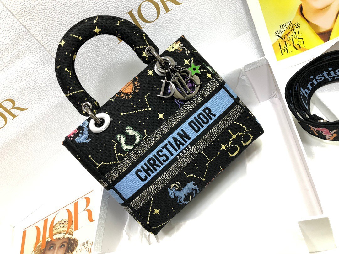 Dior Medium Lady D-Lite Bag In Black Pixel Zodiac Embroidery