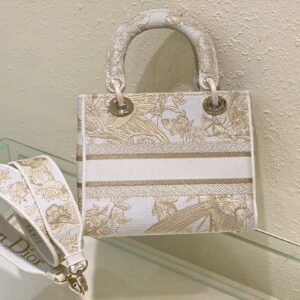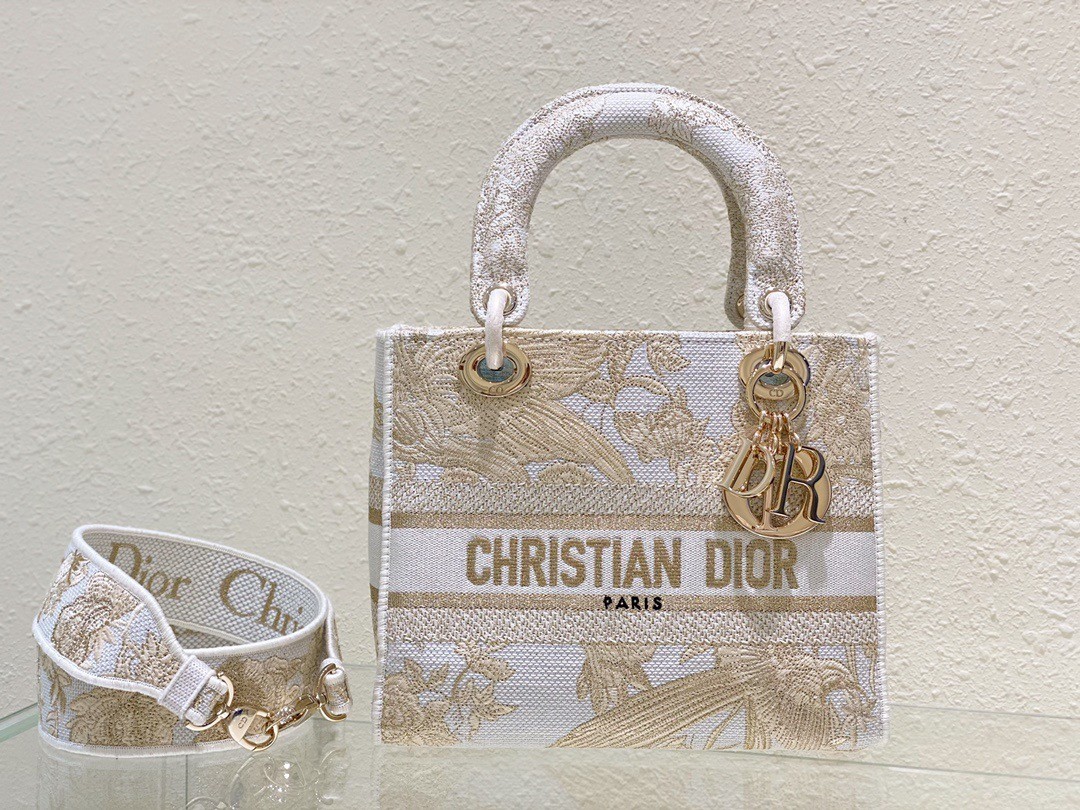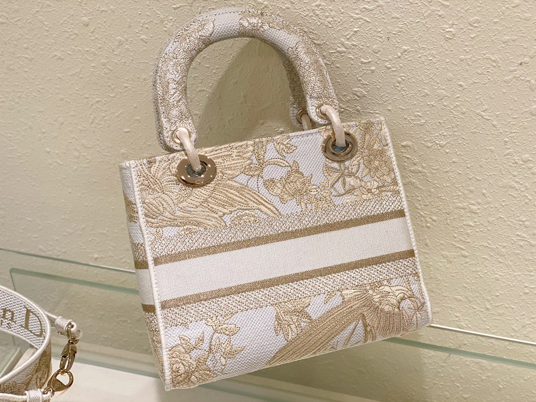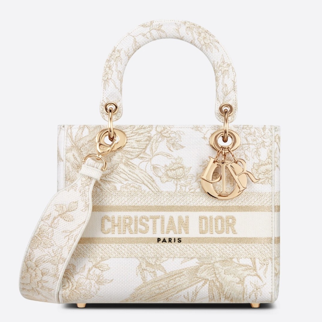 Dior Medium Lady D-Lite Bag In Gold Jardin d’Hiver Embroidery