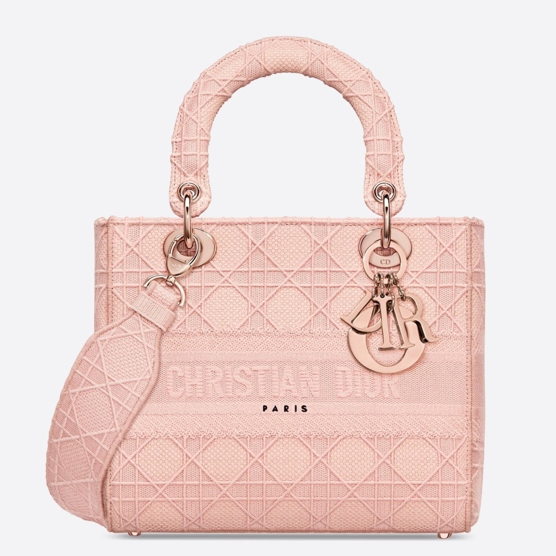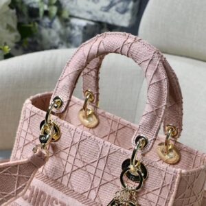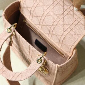 Dior Medium Lady D-Lite Bag In Pink Embroidered Canvas