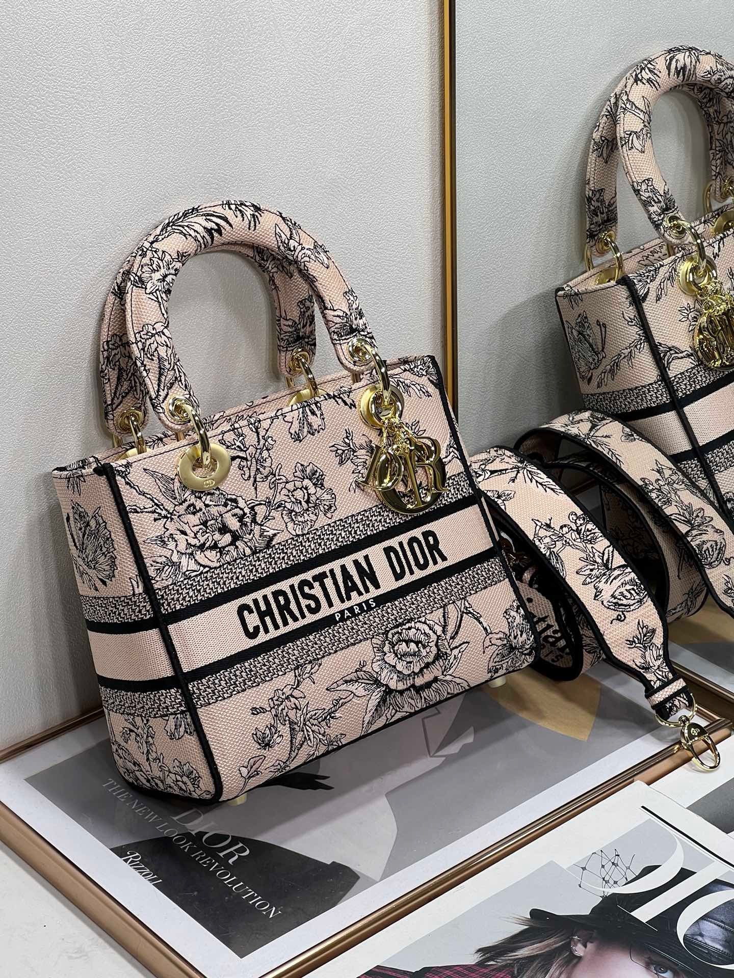 Dior Medium Lady D-Lite Bag In Powder Jardin Botanique Embroidery