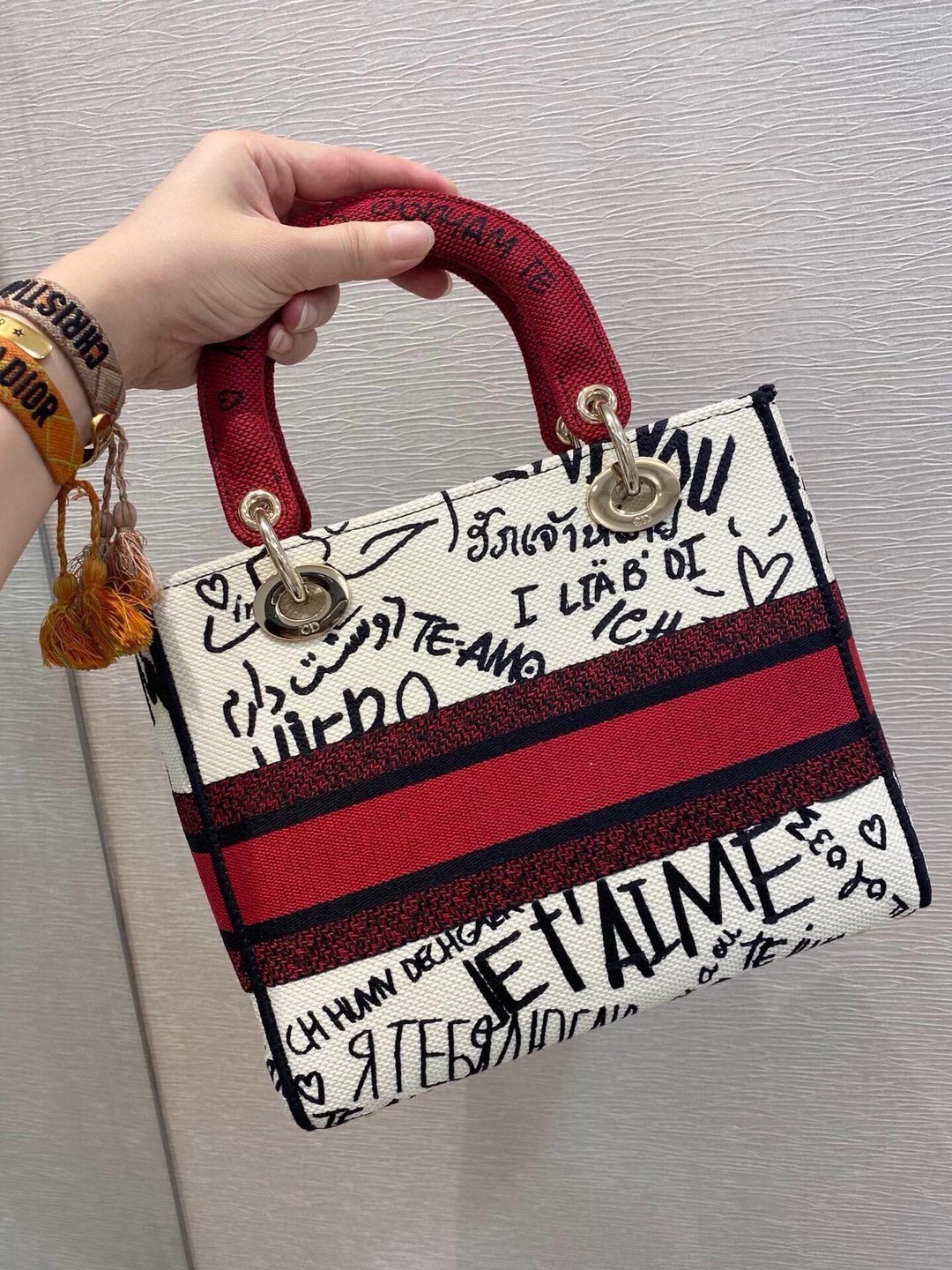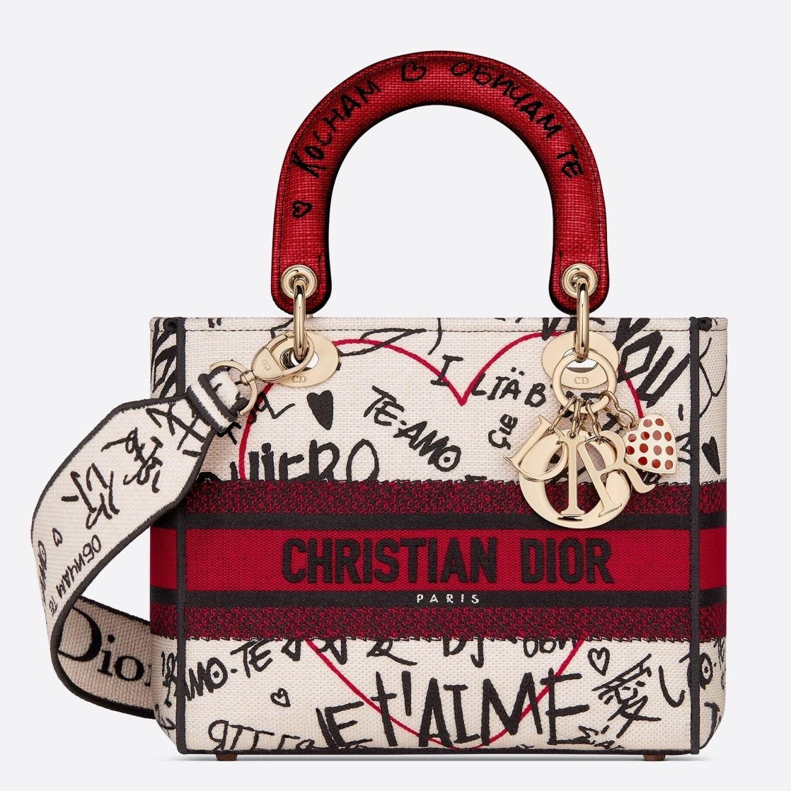 Dior Medium Lady D-Lite Dioramour Graffiti Embroidery Bag