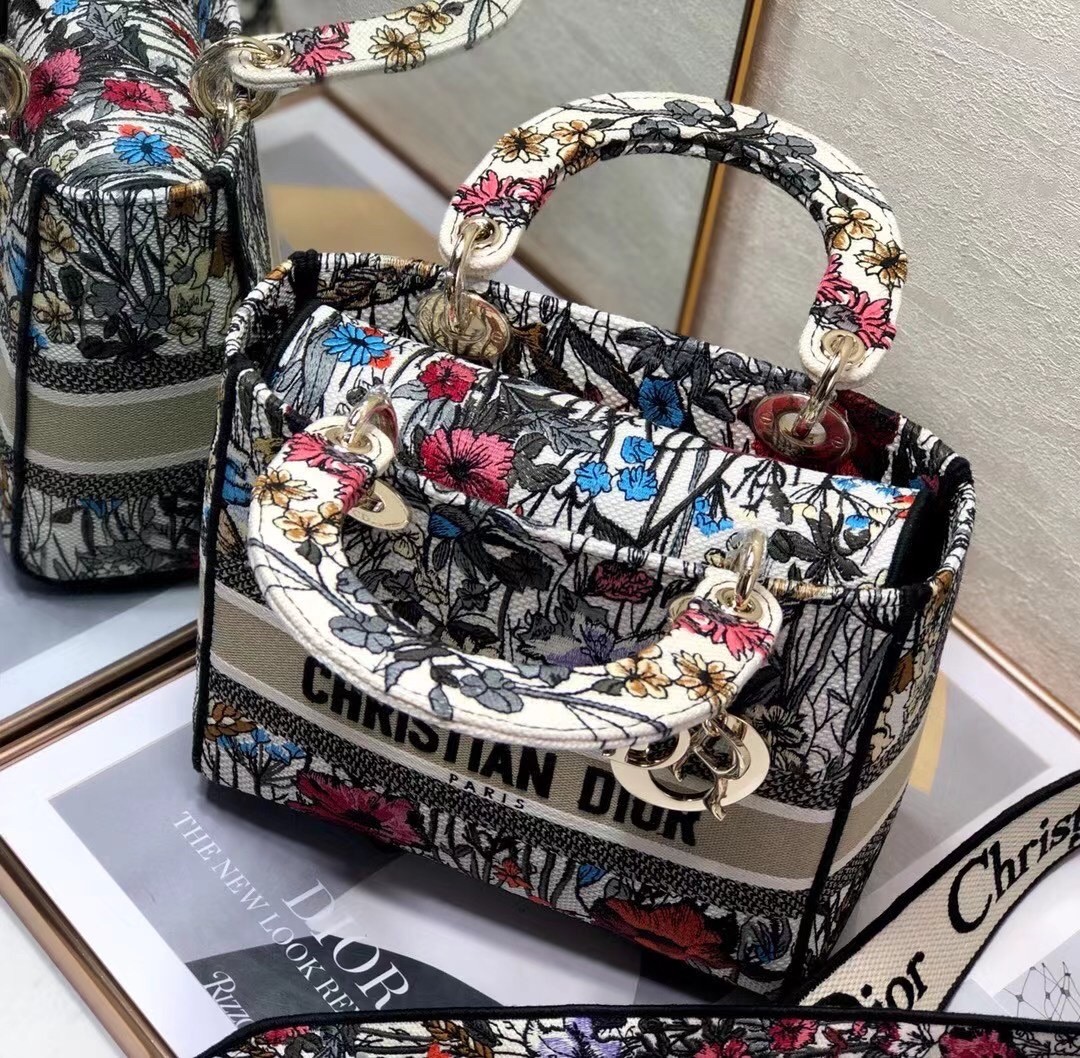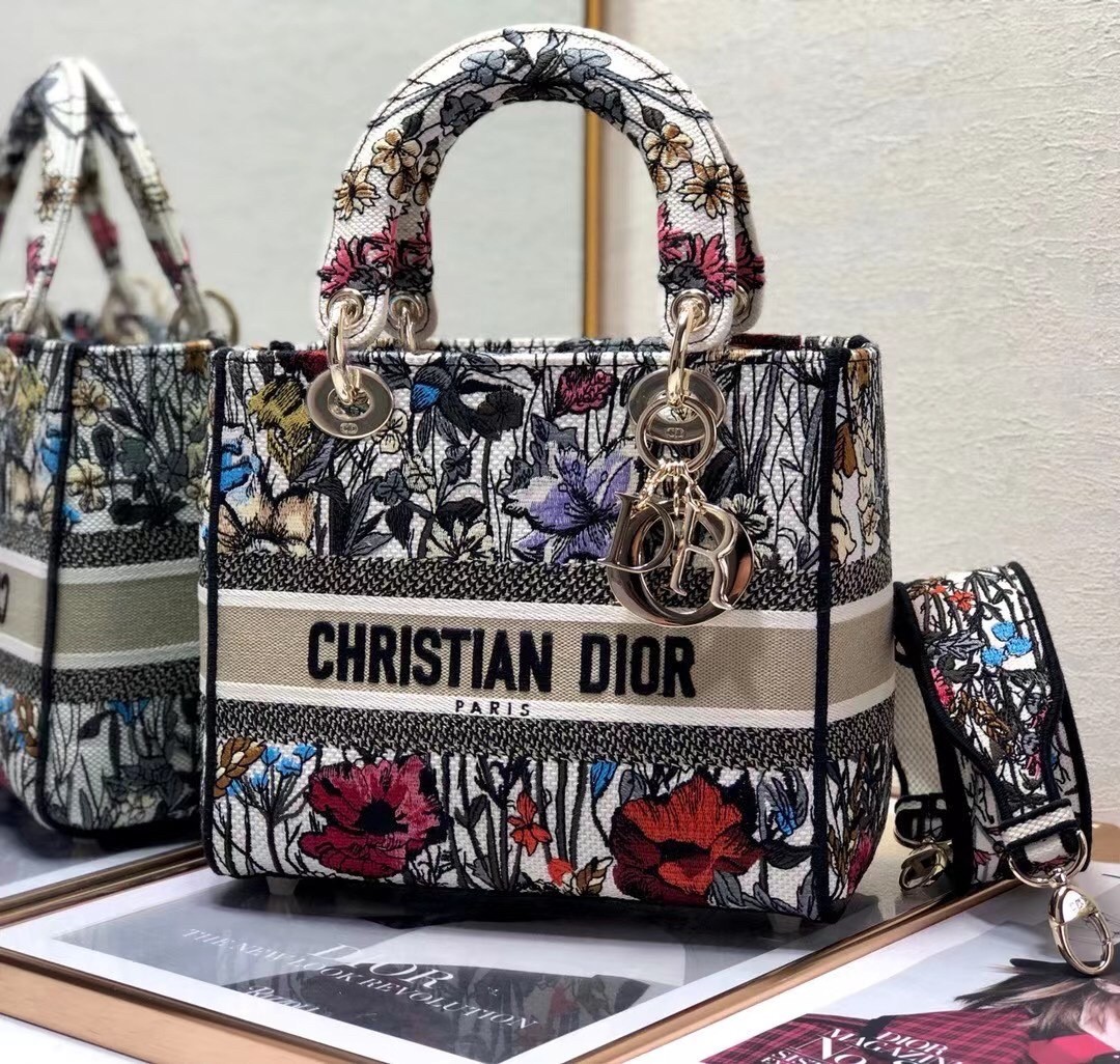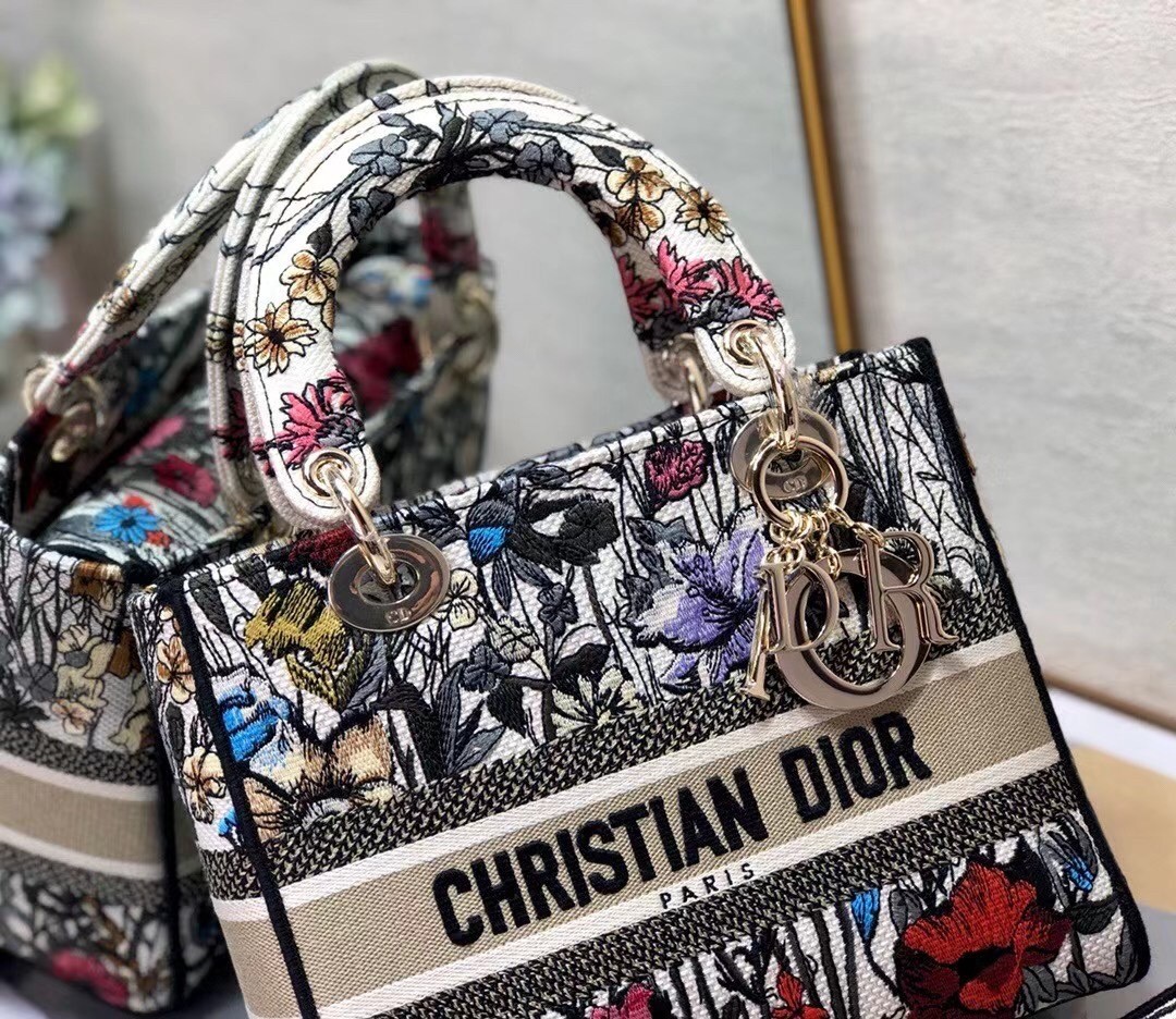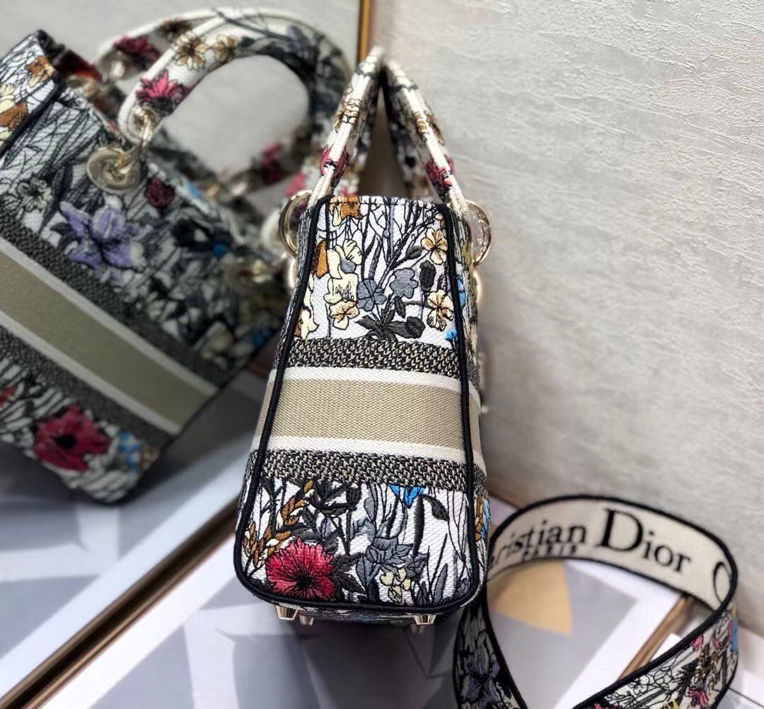 Dior Medium Lady D-Lite Mille Fleurs Embroidery Bag