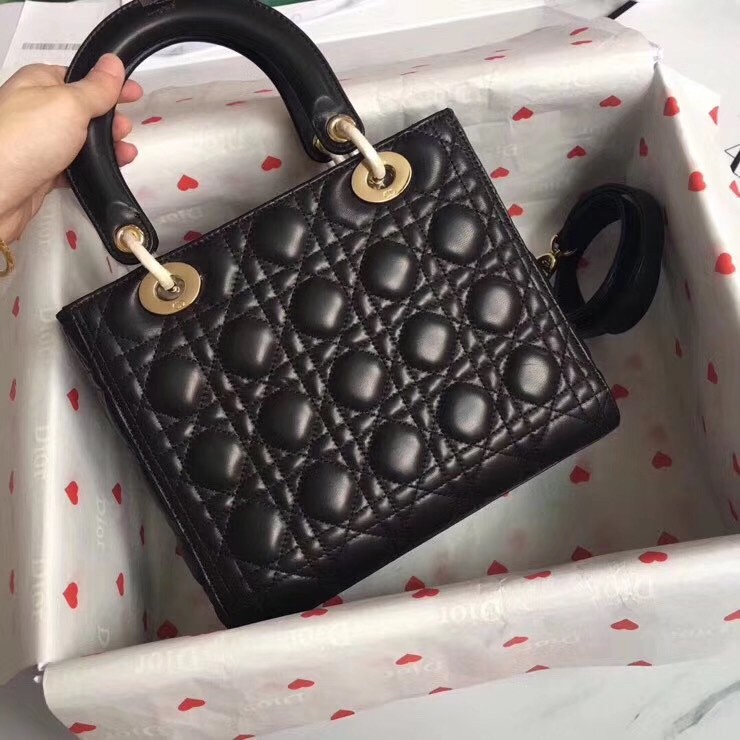 Dior Medium Lady Dior Bag In Black Lambskin
