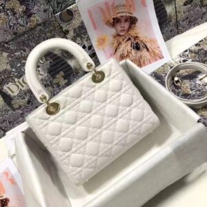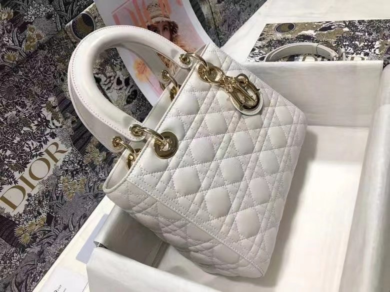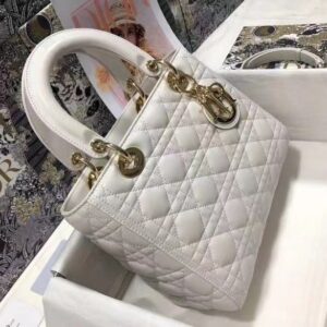 Dior Medium Lady Dior Bag In White Cannage Lambskin