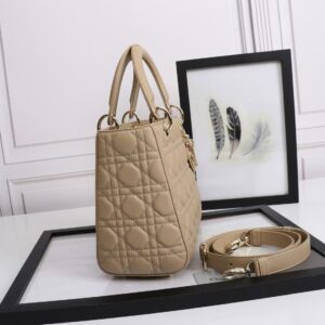 Dior Medium Lady Dior Bag with Enamel Charm In Beige Lambskin