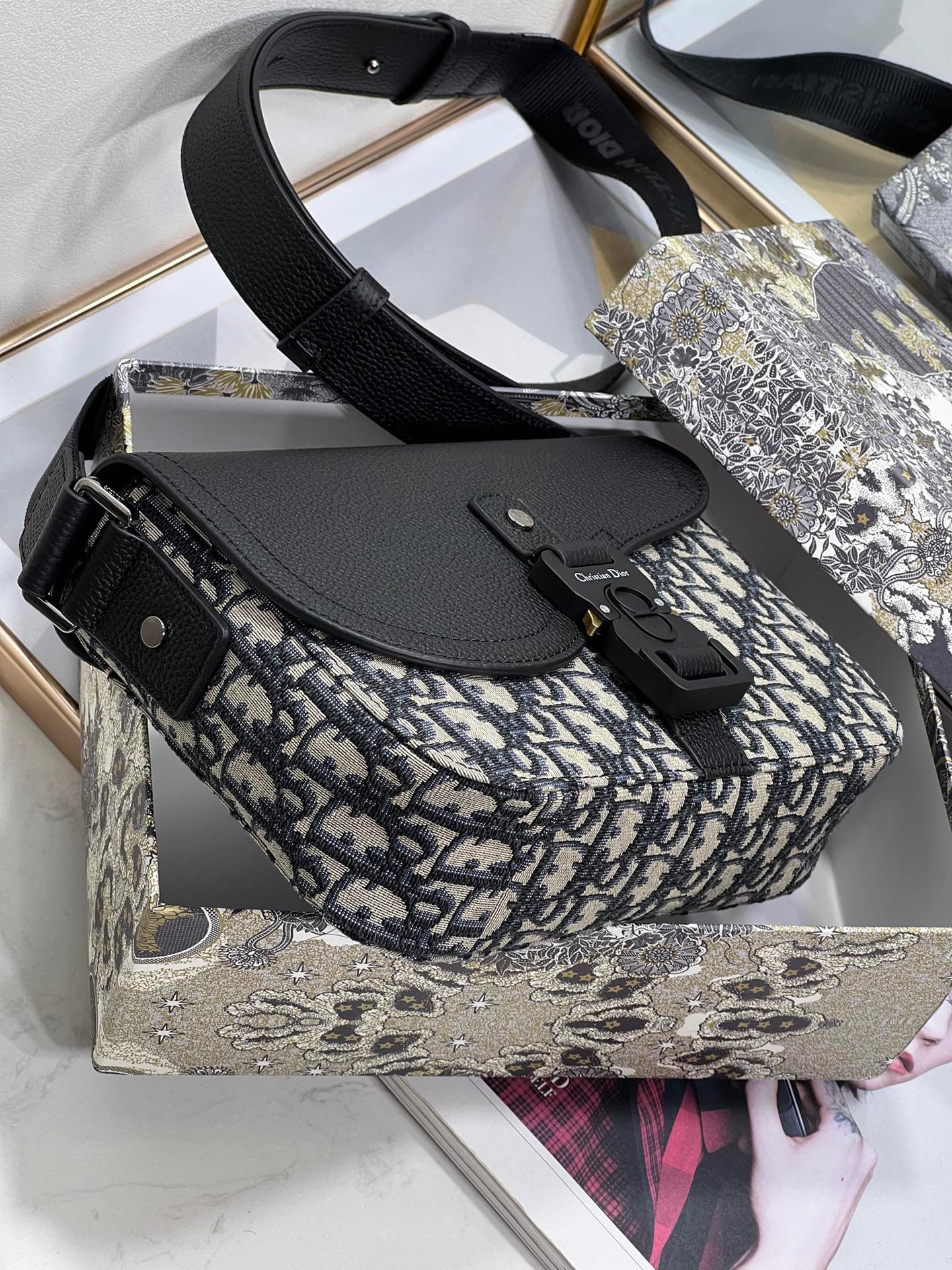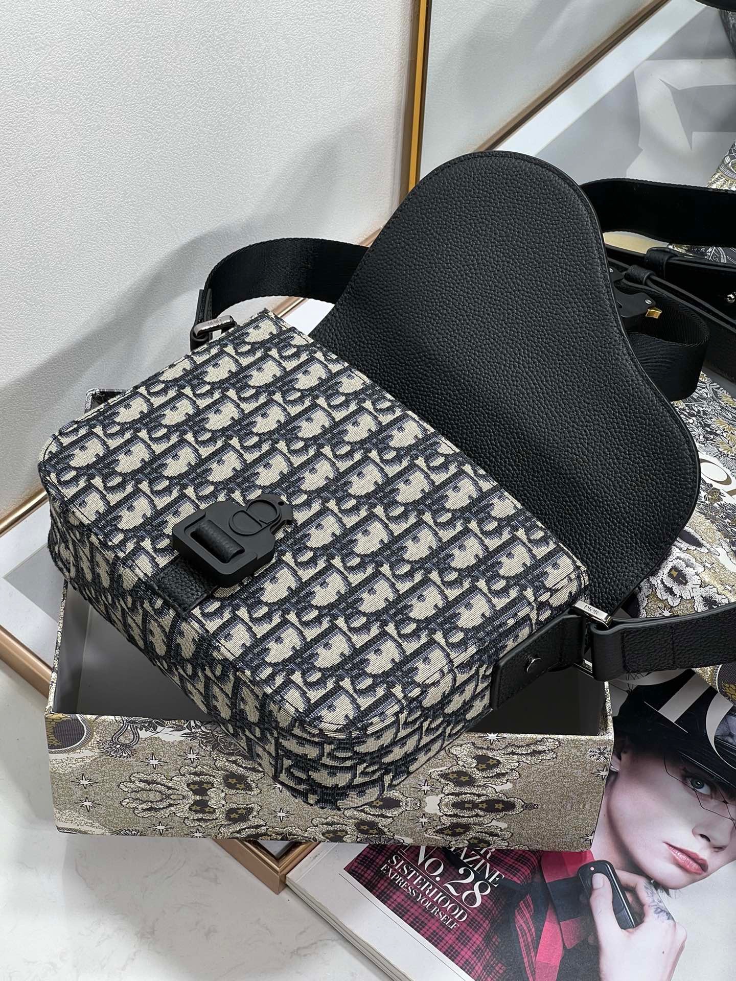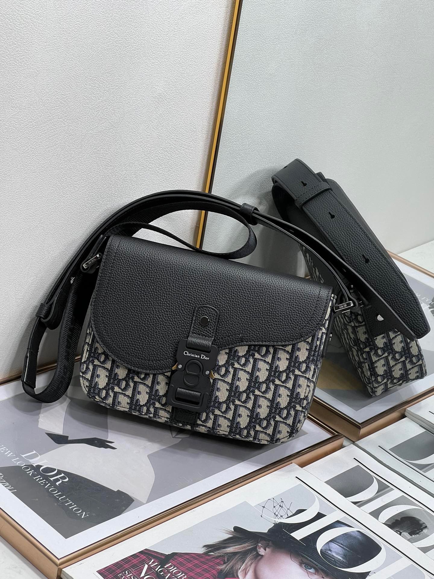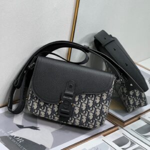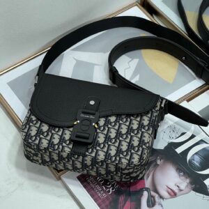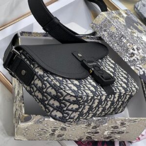 – Adjustable leather and nylon jacquard Christian Dior shoulder strap