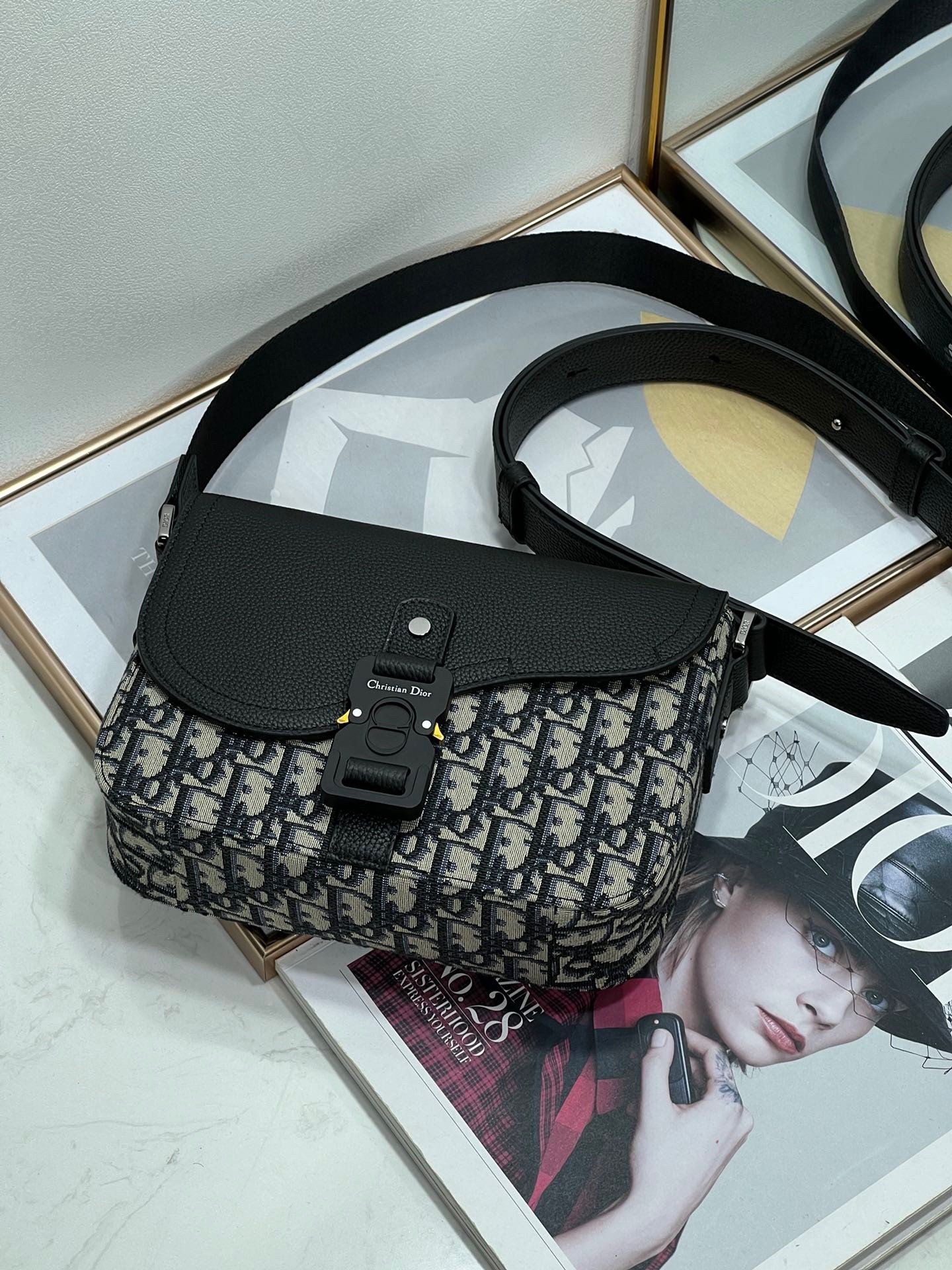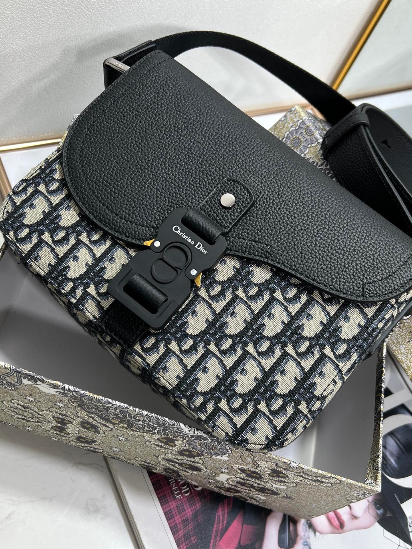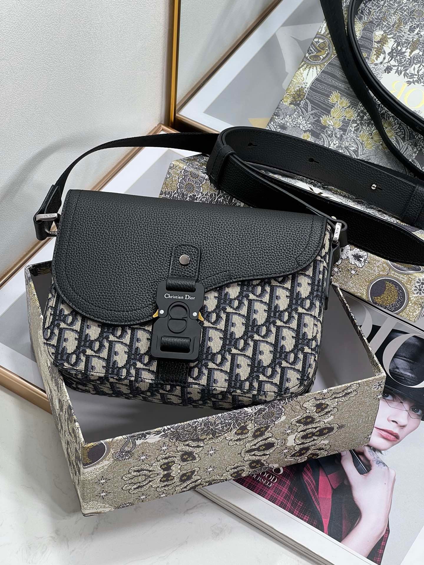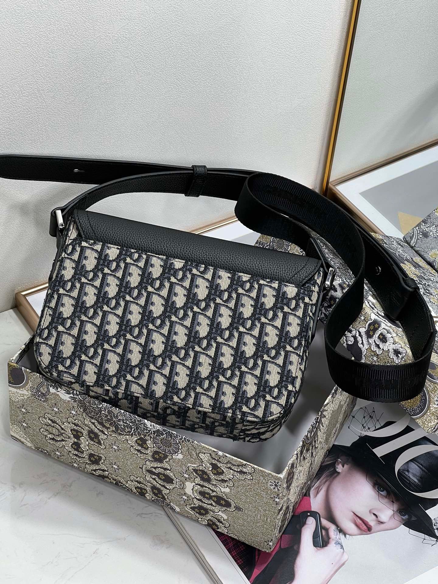 – Adjustable leather and nylon jacquard Christian Dior shoulder strap