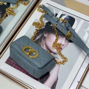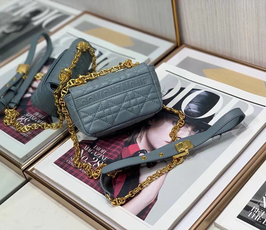 Dior Micro Caro Bag In Blue Cannage Calfskin
