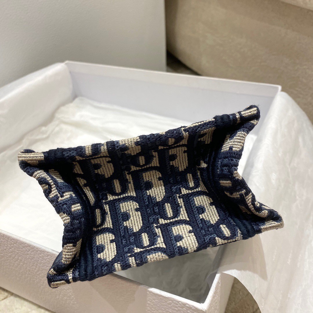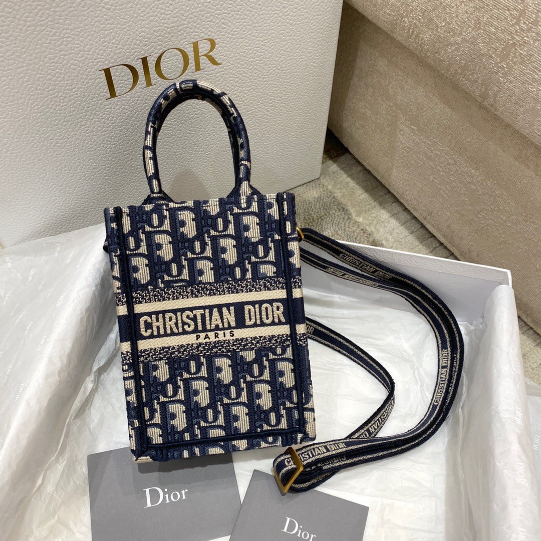 Dior Mini Book Tote Phone Bag In Blue Dior Oblique Embroidery