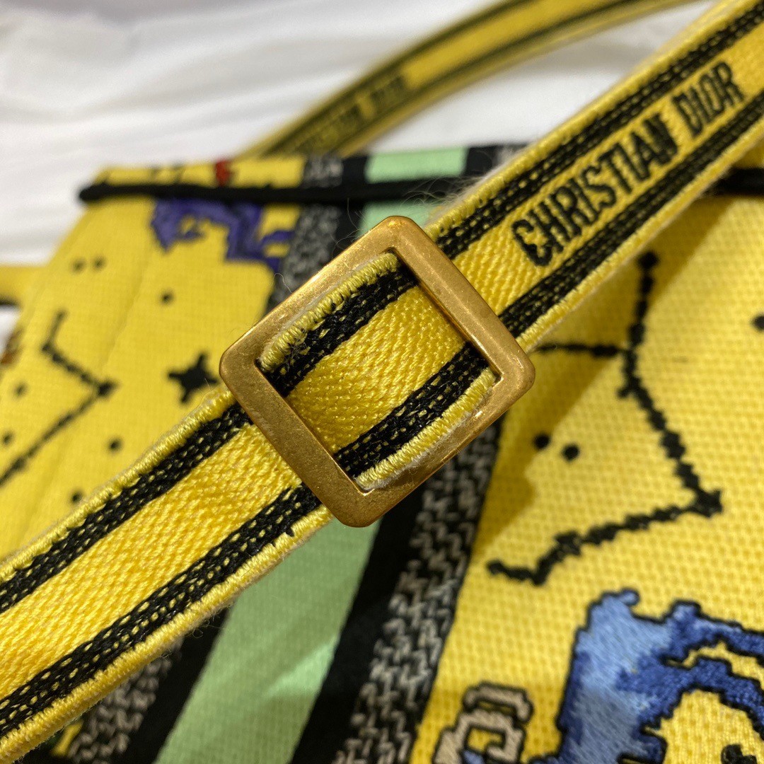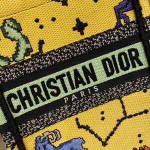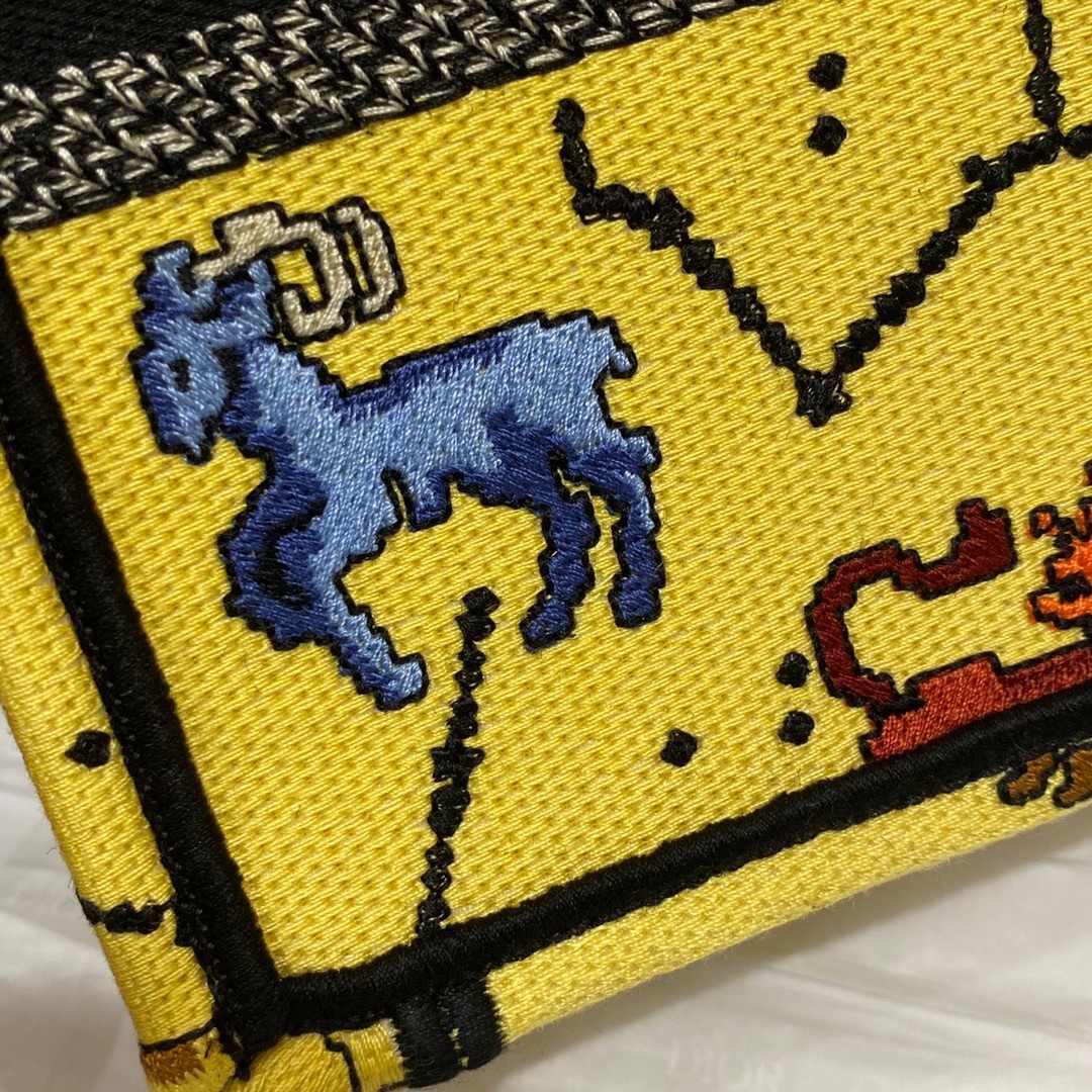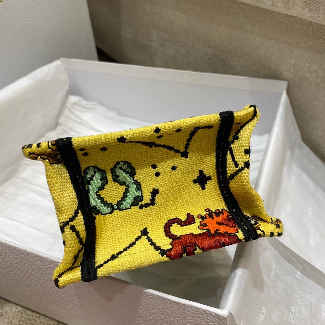 Dior Mini Book Tote Phone Bag In Yellow Pixel Zodiac Embroidery