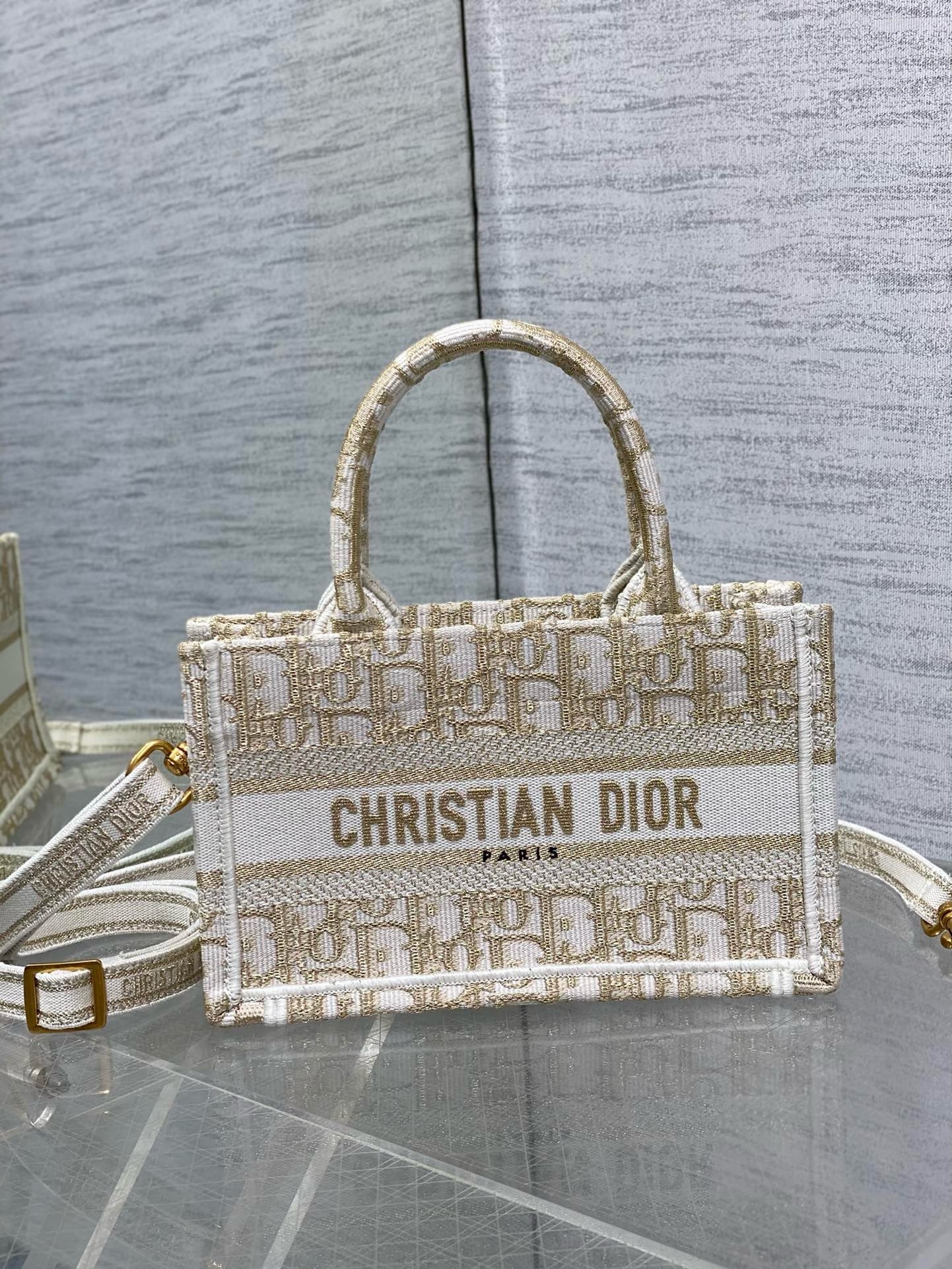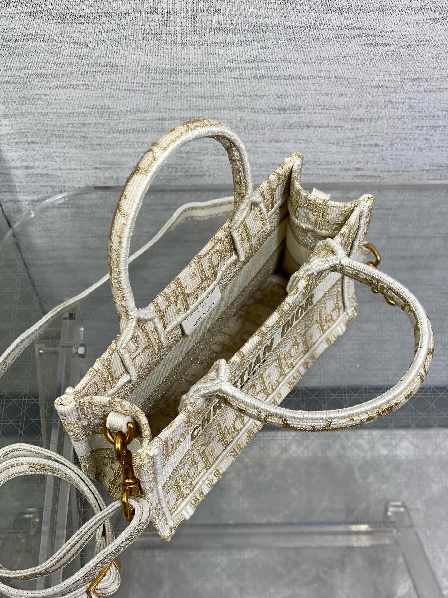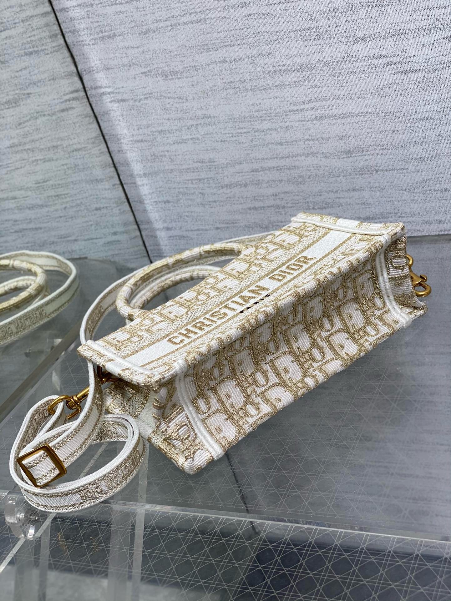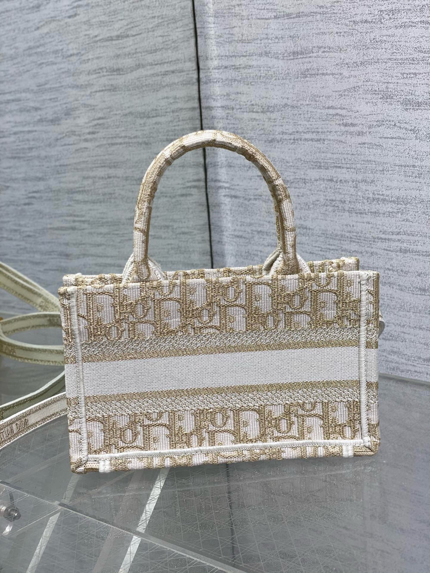 Dior Mini Book Tote with Strap in Gold-Tone Dior Oblique Embroidery