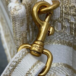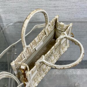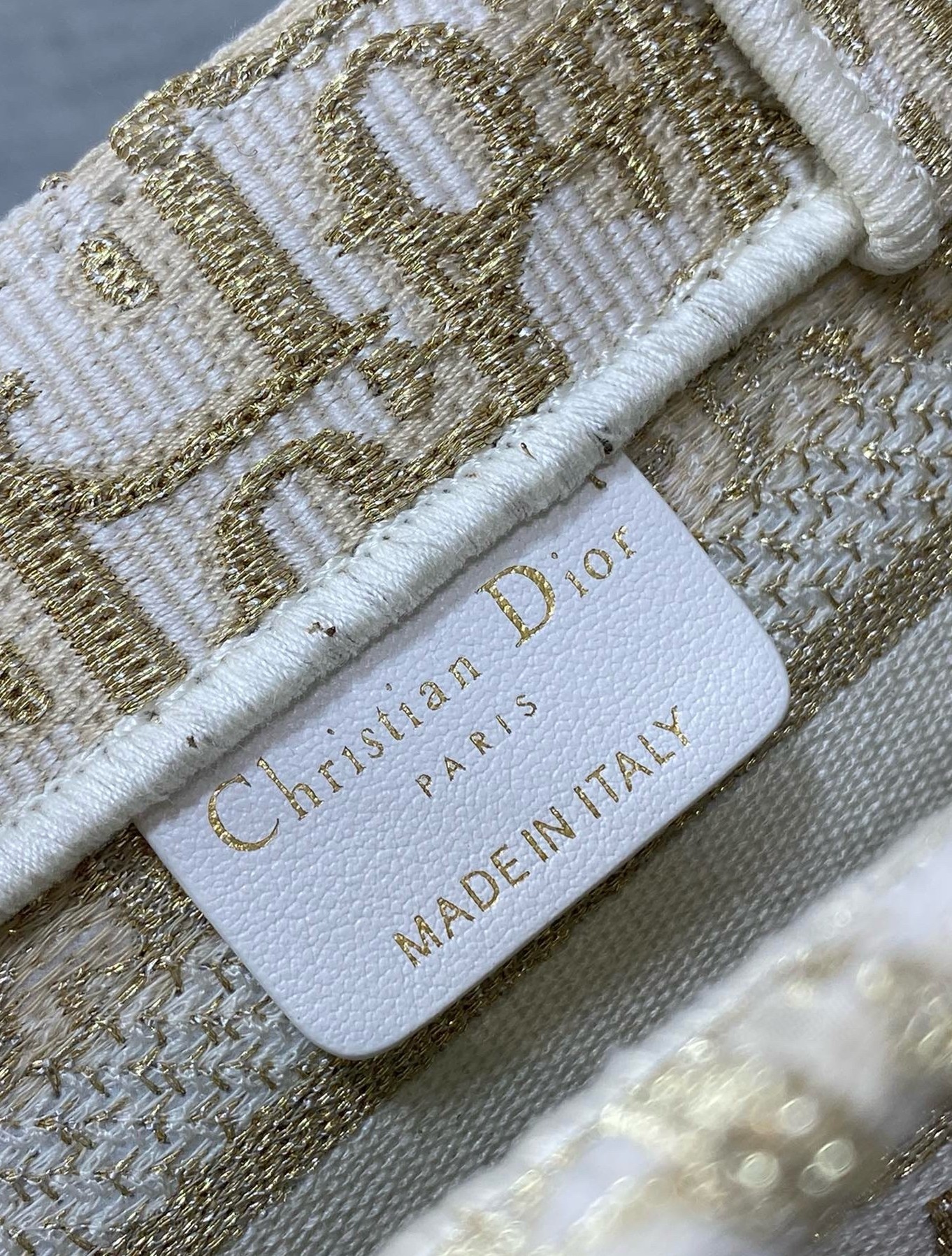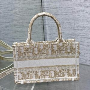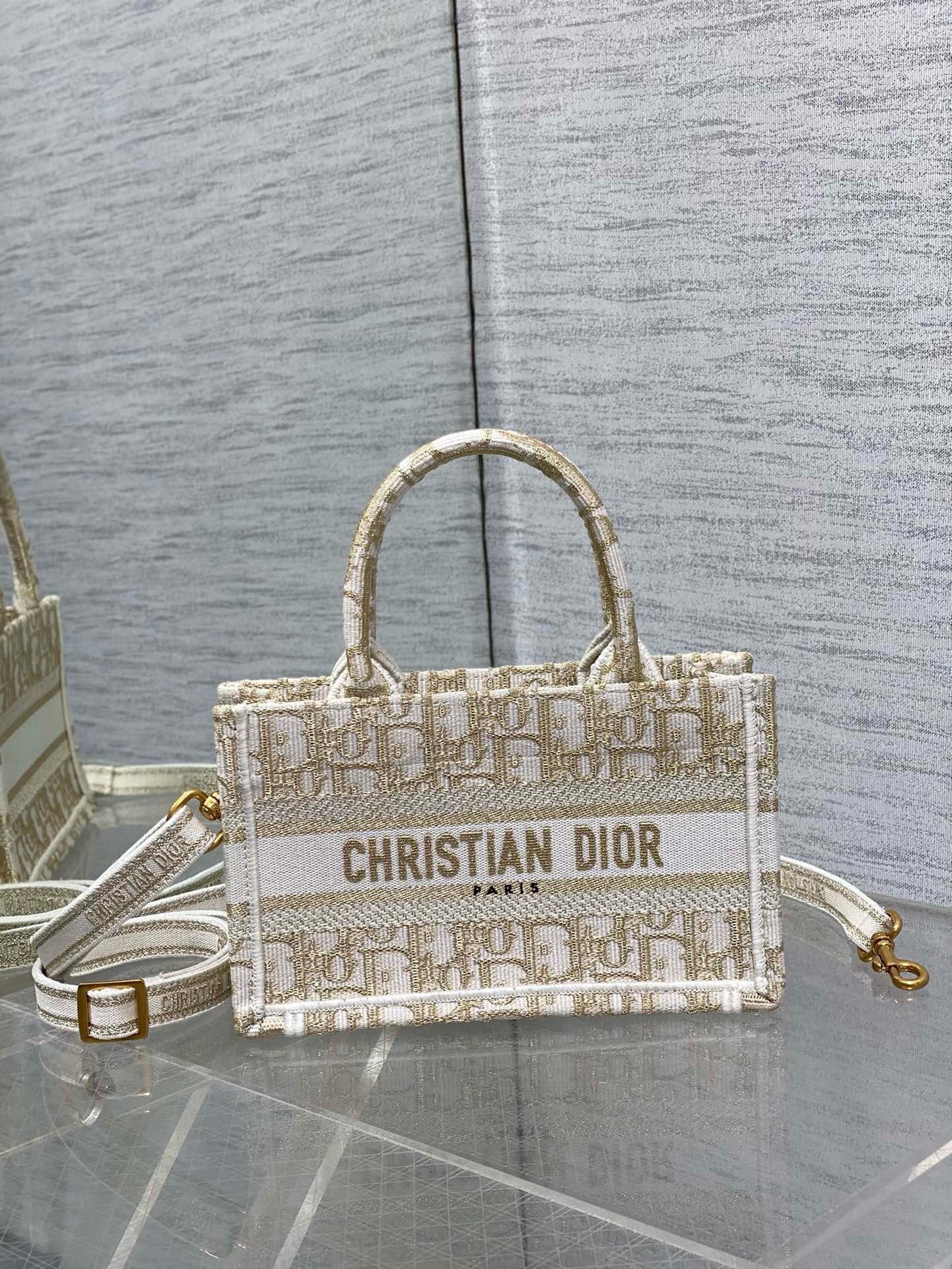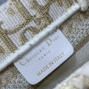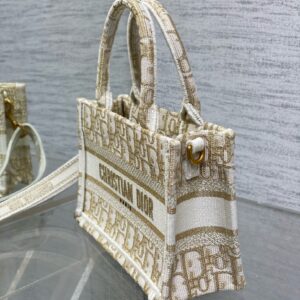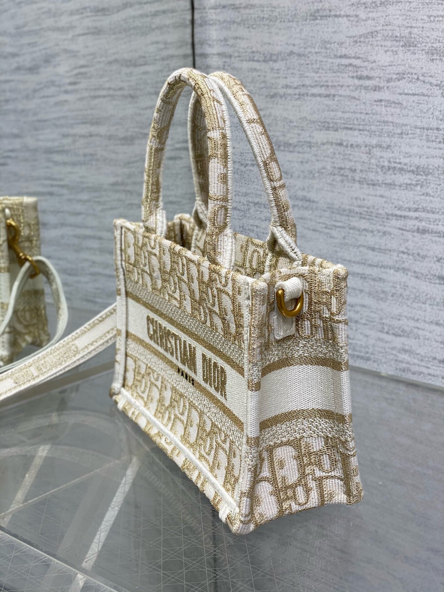 Dior Mini Book Tote with Strap in Gold-Tone Dior Oblique Embroidery