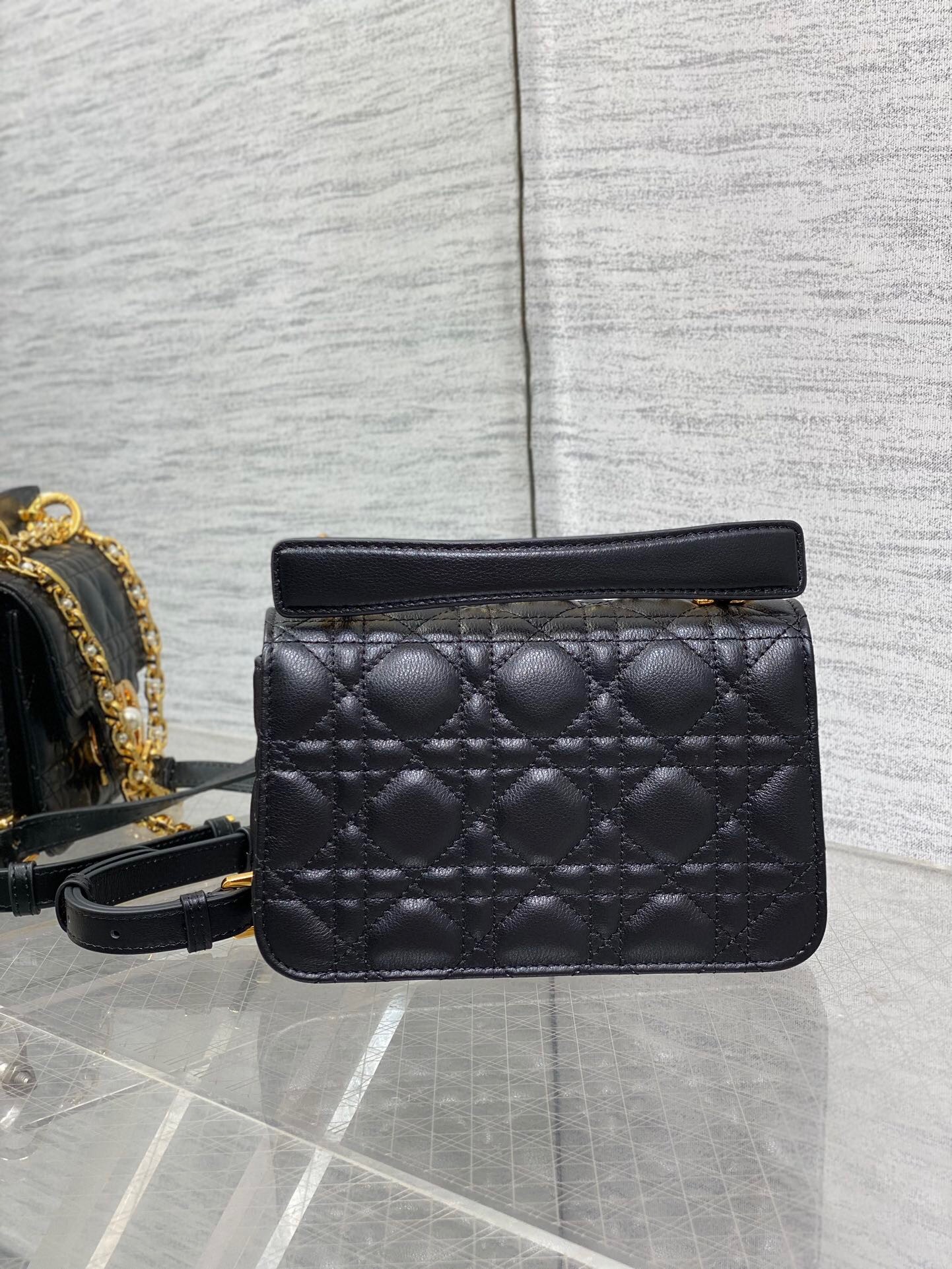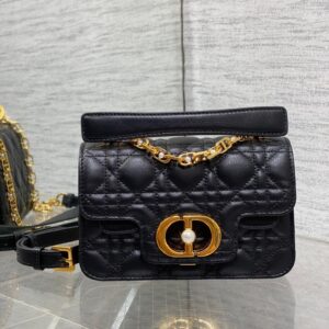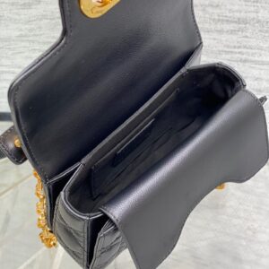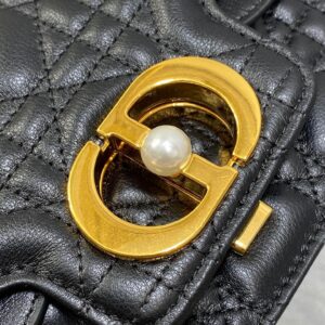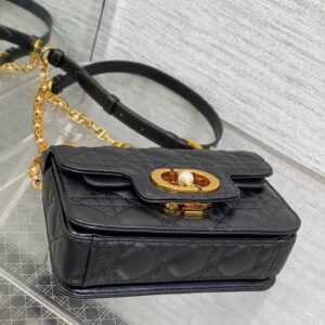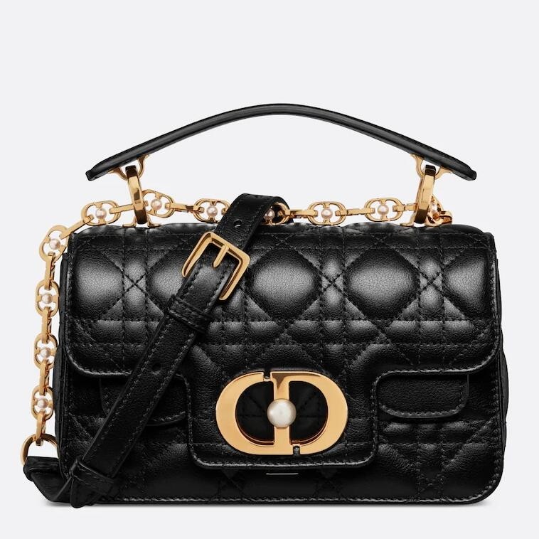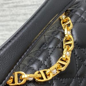– Removable and adjustable chain shoulder strap with white resin pearls and leather insert