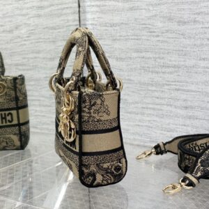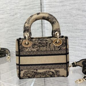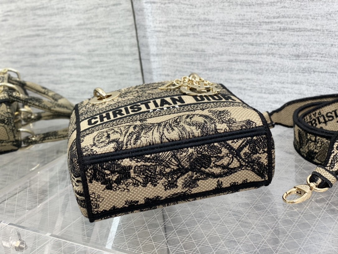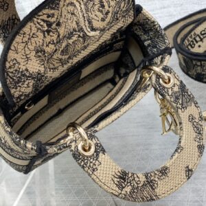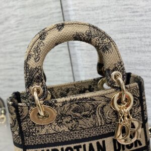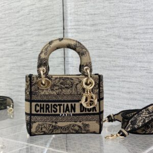 Dior Mini Lady D-Lite Bag In Brown Toile de Jouy Embroidery