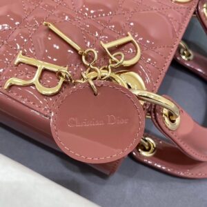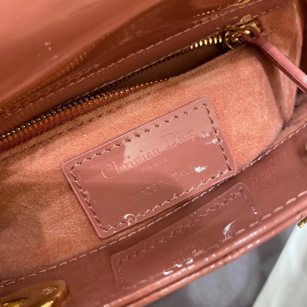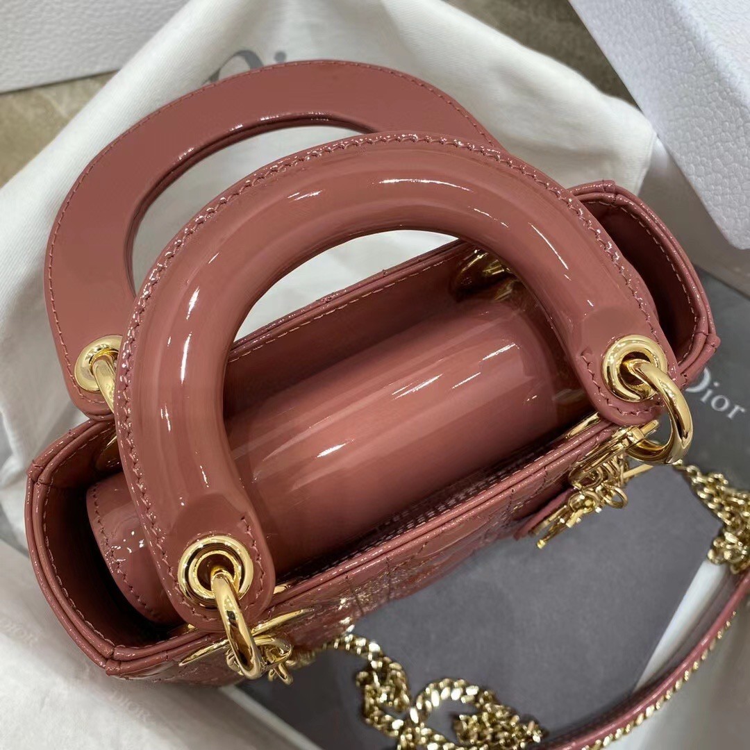 Dior Mini Lady Dior Bag In Beige Patent Calfskin