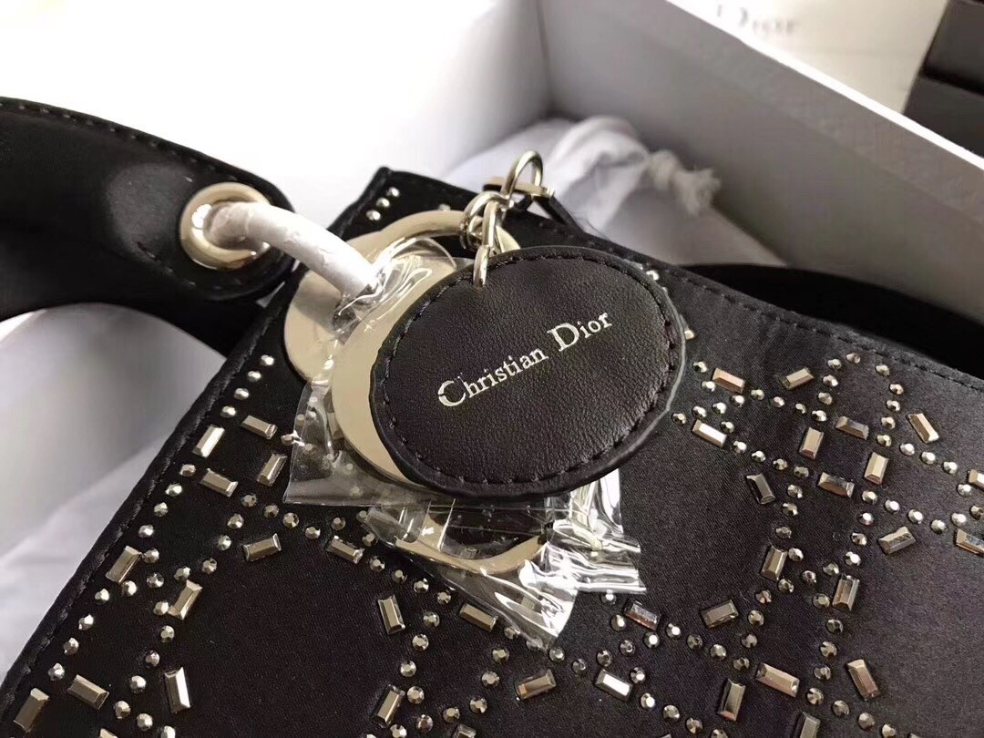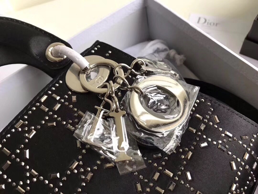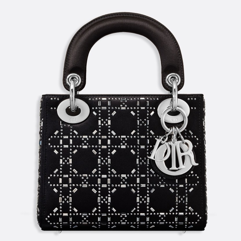 Dior Mini Lady Dior Bag In Satin With Rhinestones