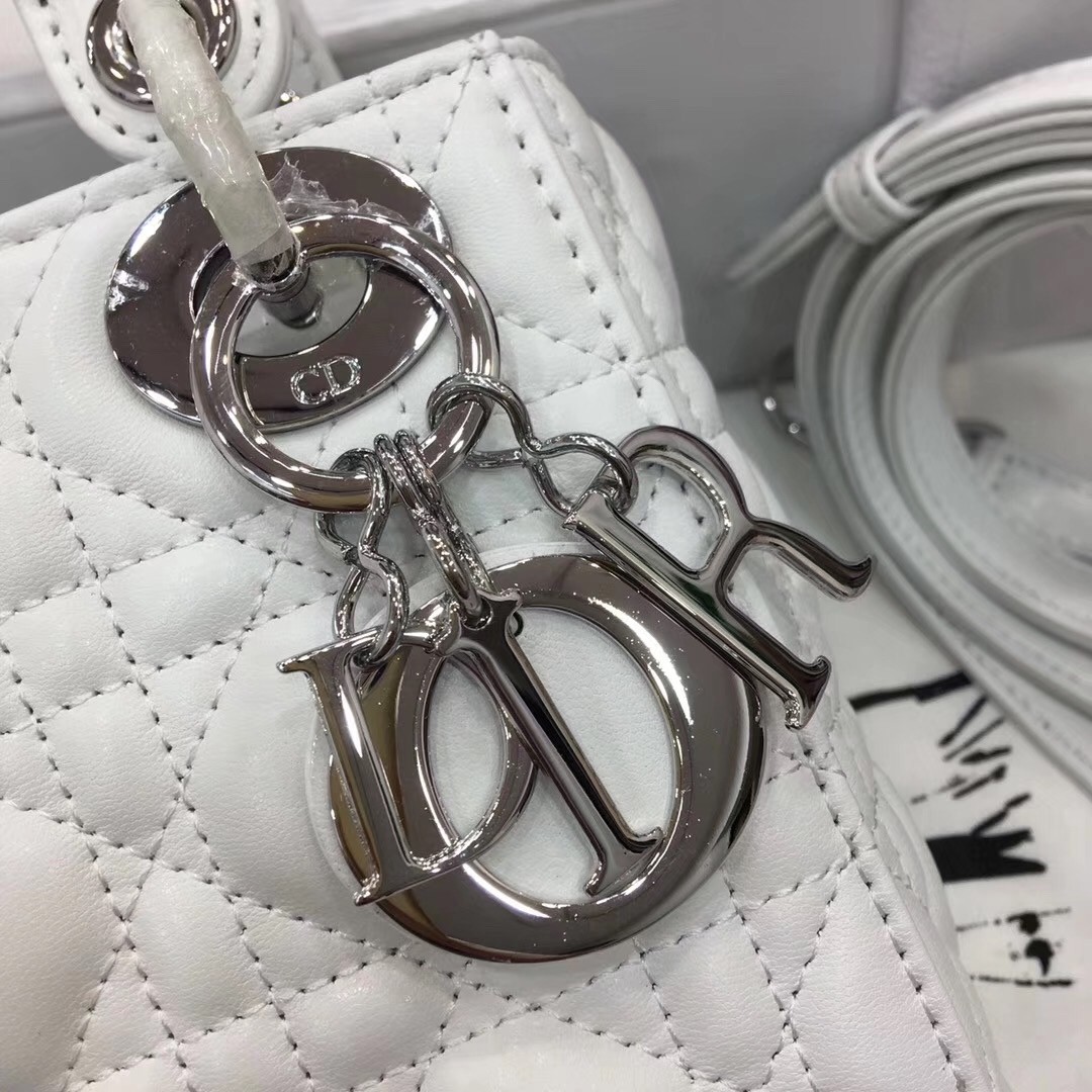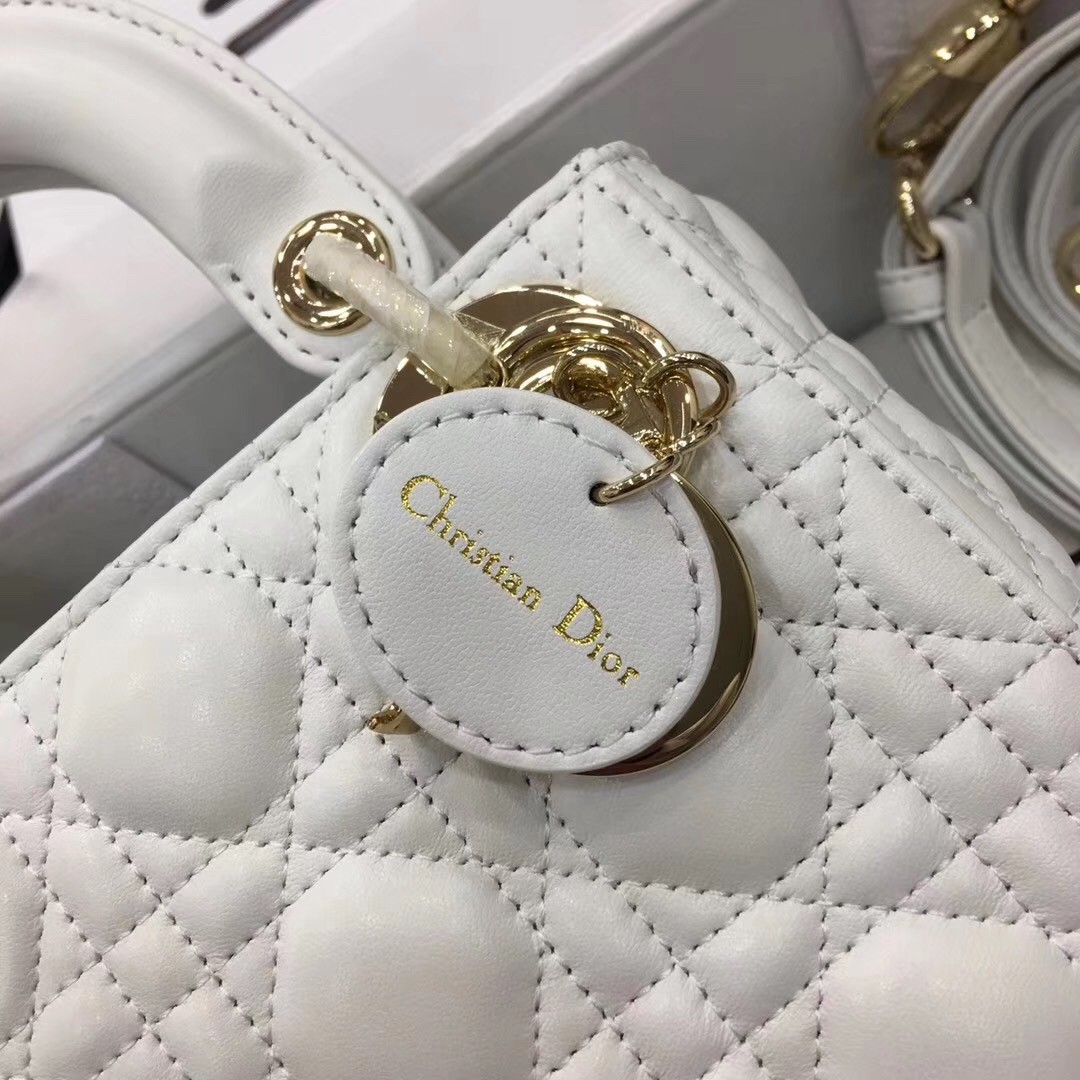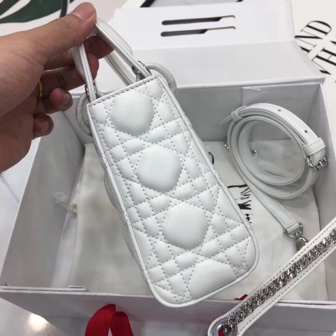 Dior Mini Lady Dior Bag In White Lambskin