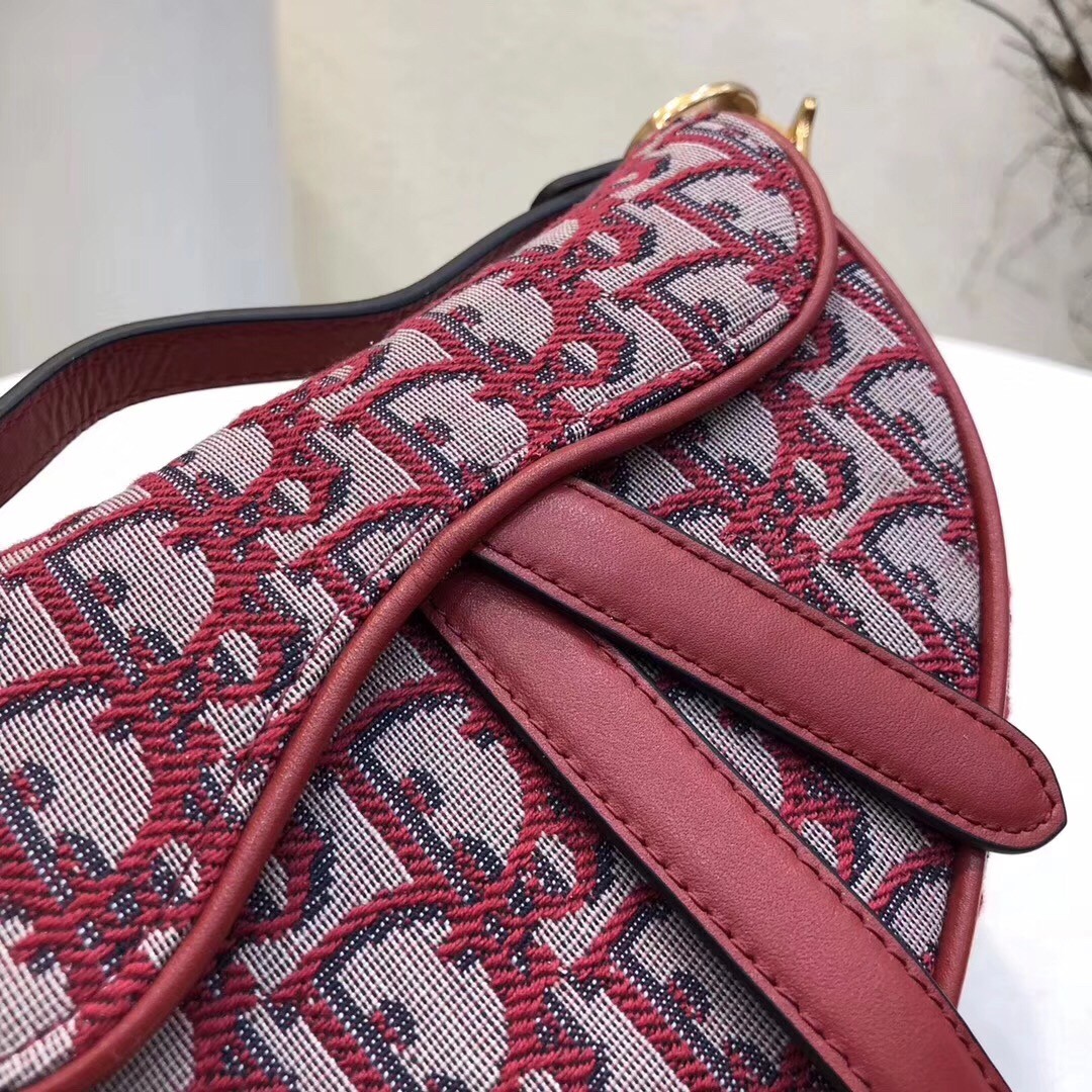 Dior Mini Saddle Bag In Bordeaux Oblique Jacquard Canvas