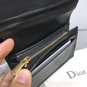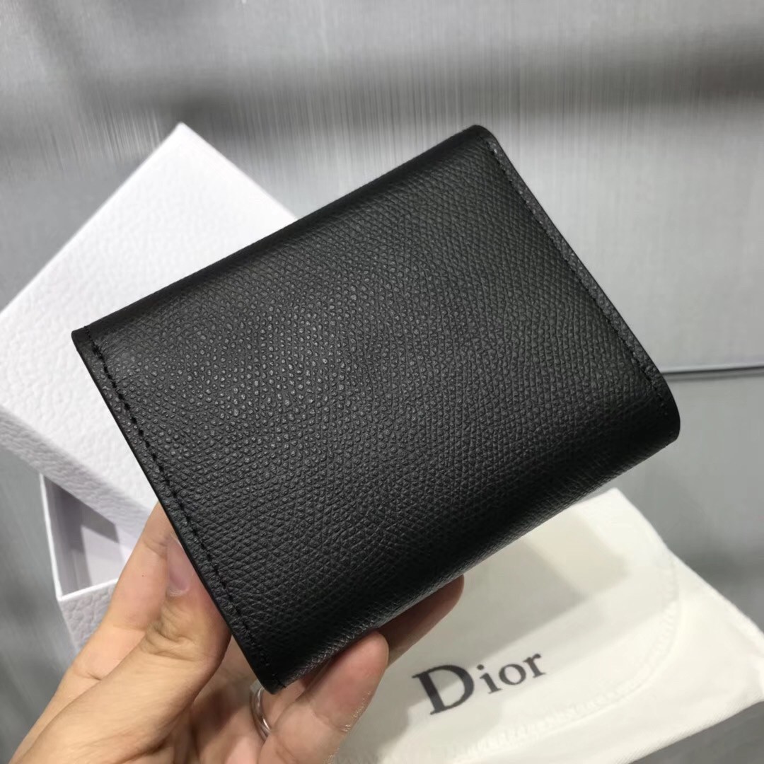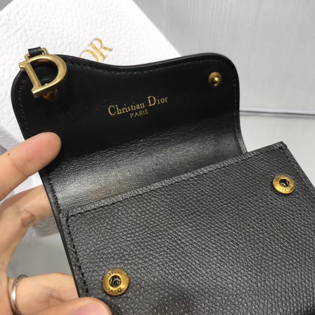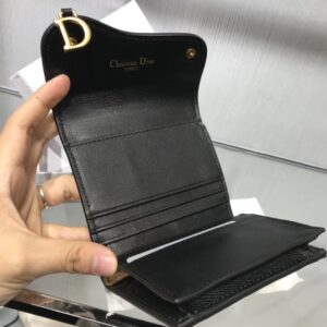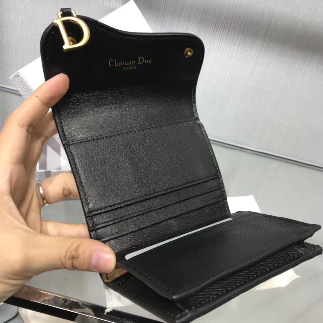 Dior Mini Saddle Tri-Fold Wallet In Black Calfskin