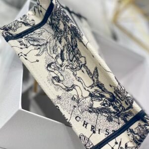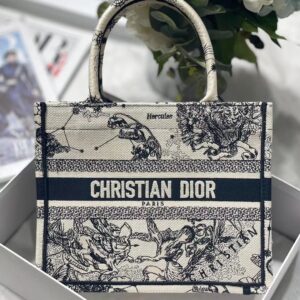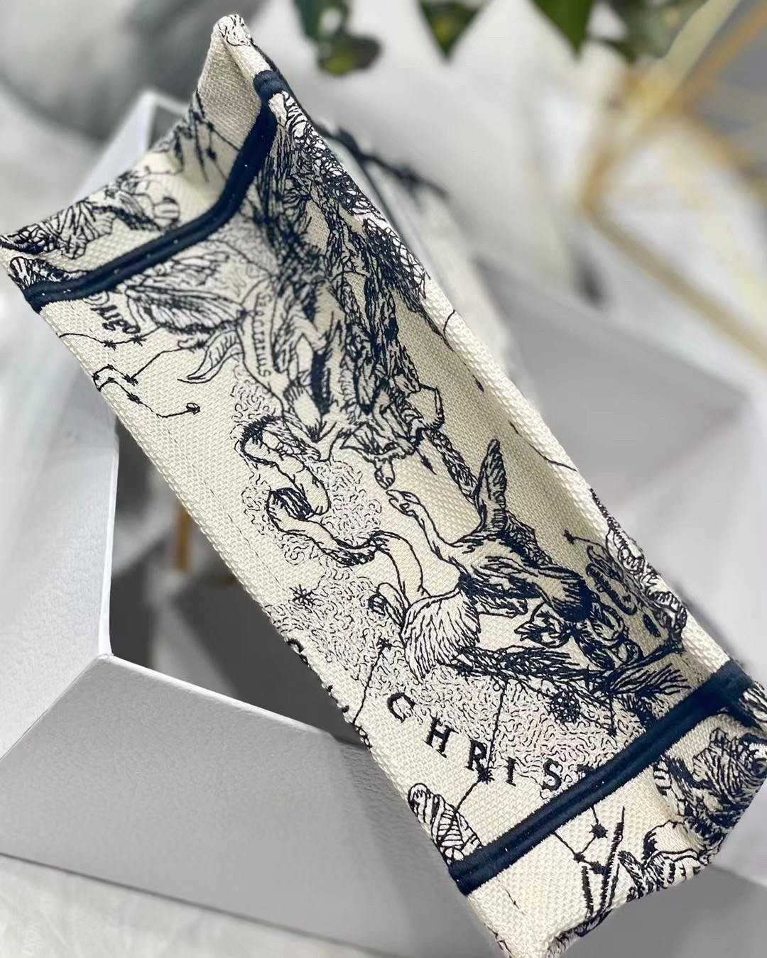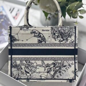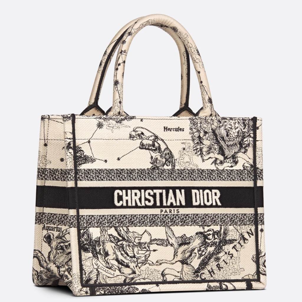 Dior New Small Book Tote In White Toile de Jouy Zodiac Embroidery