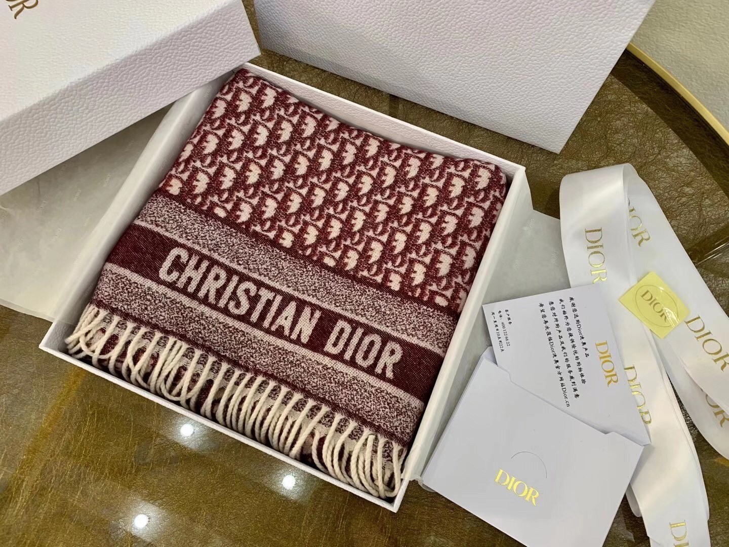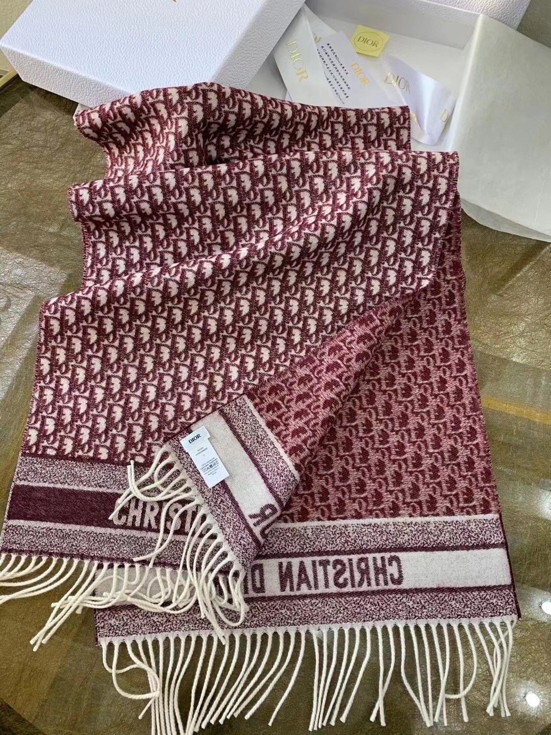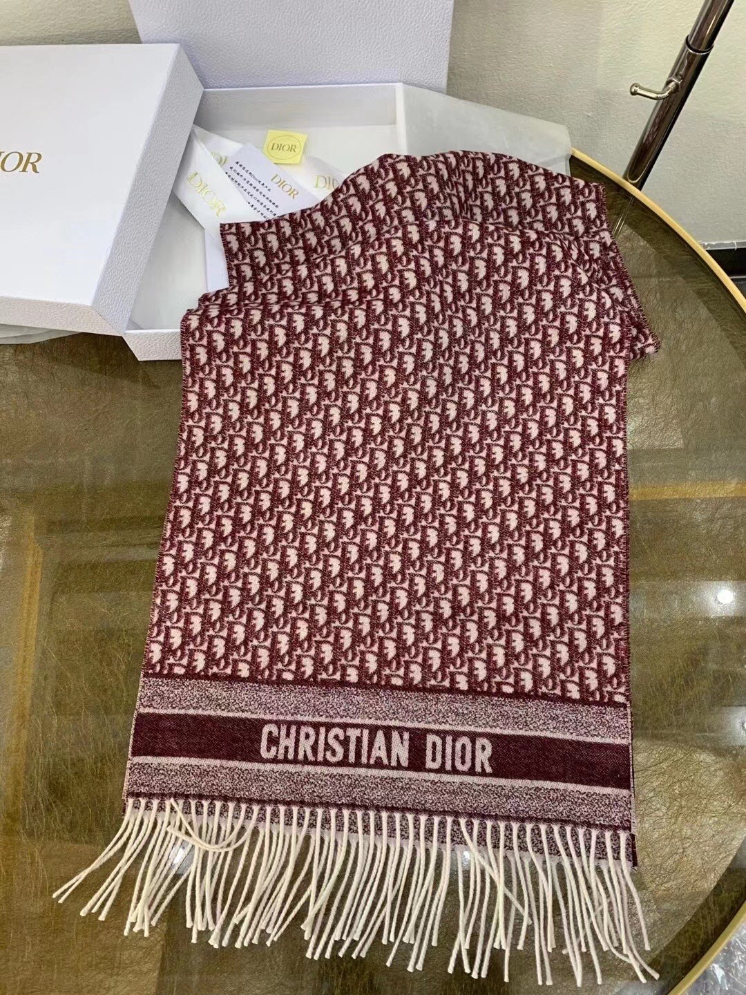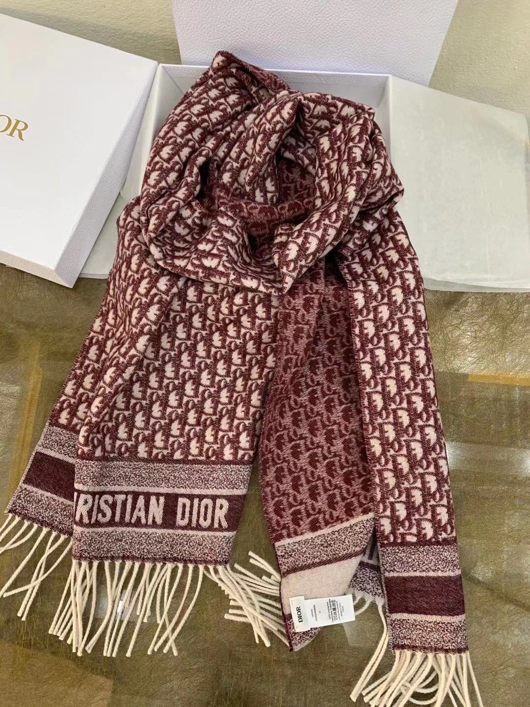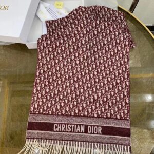 Dior Oblique Scarf In Burgundy Cashmere