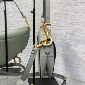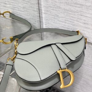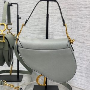 Dior Saddle Bag with Strap in Grey Stone Grained Calfskin