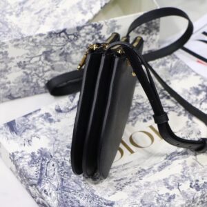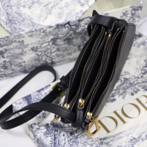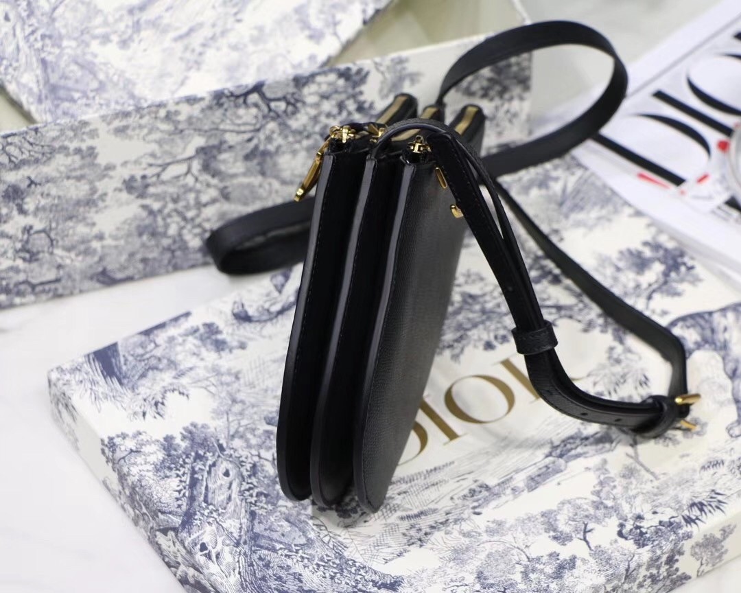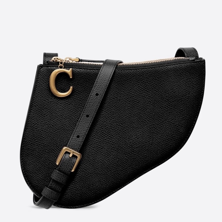 Dior Saddle Trio Pouch With Strap In Black Calfskin