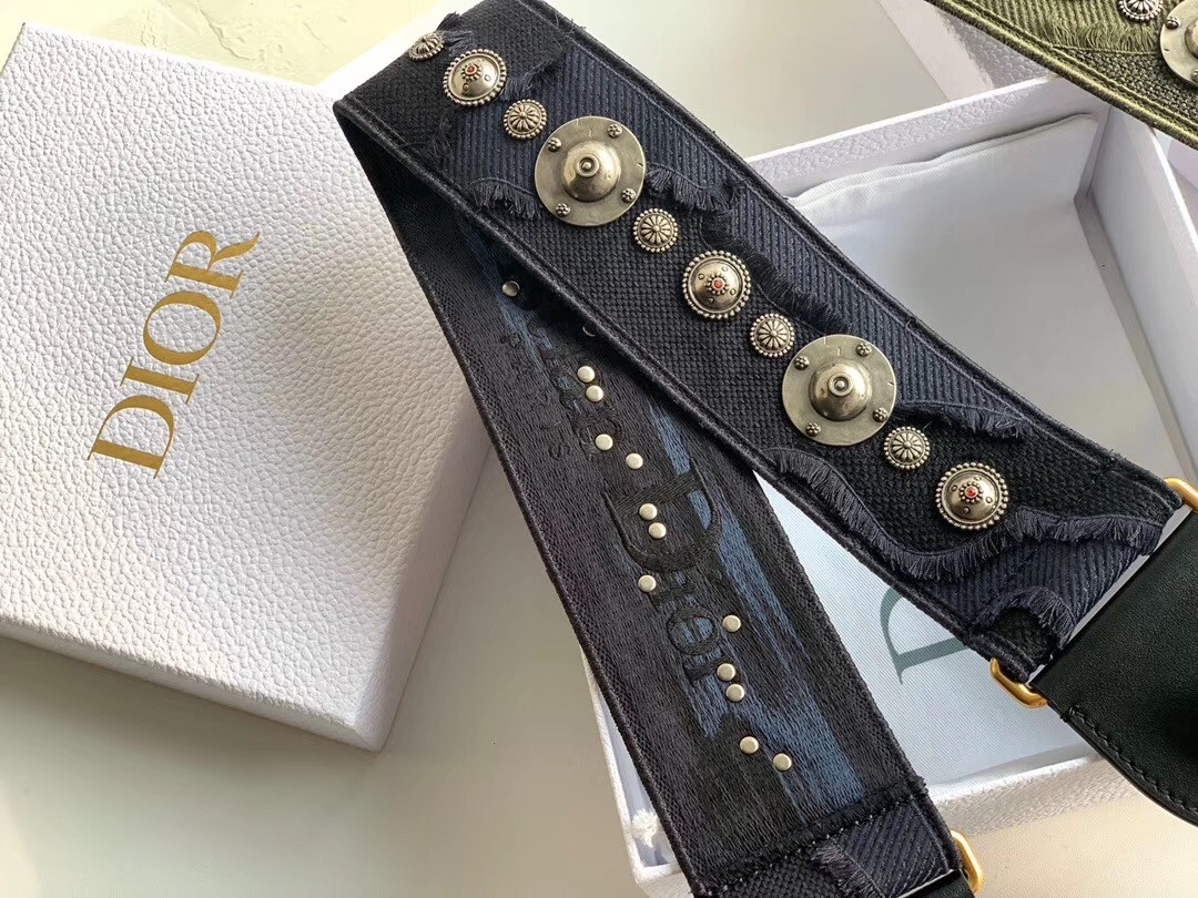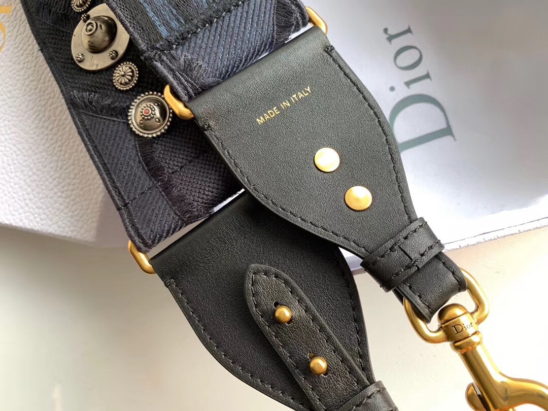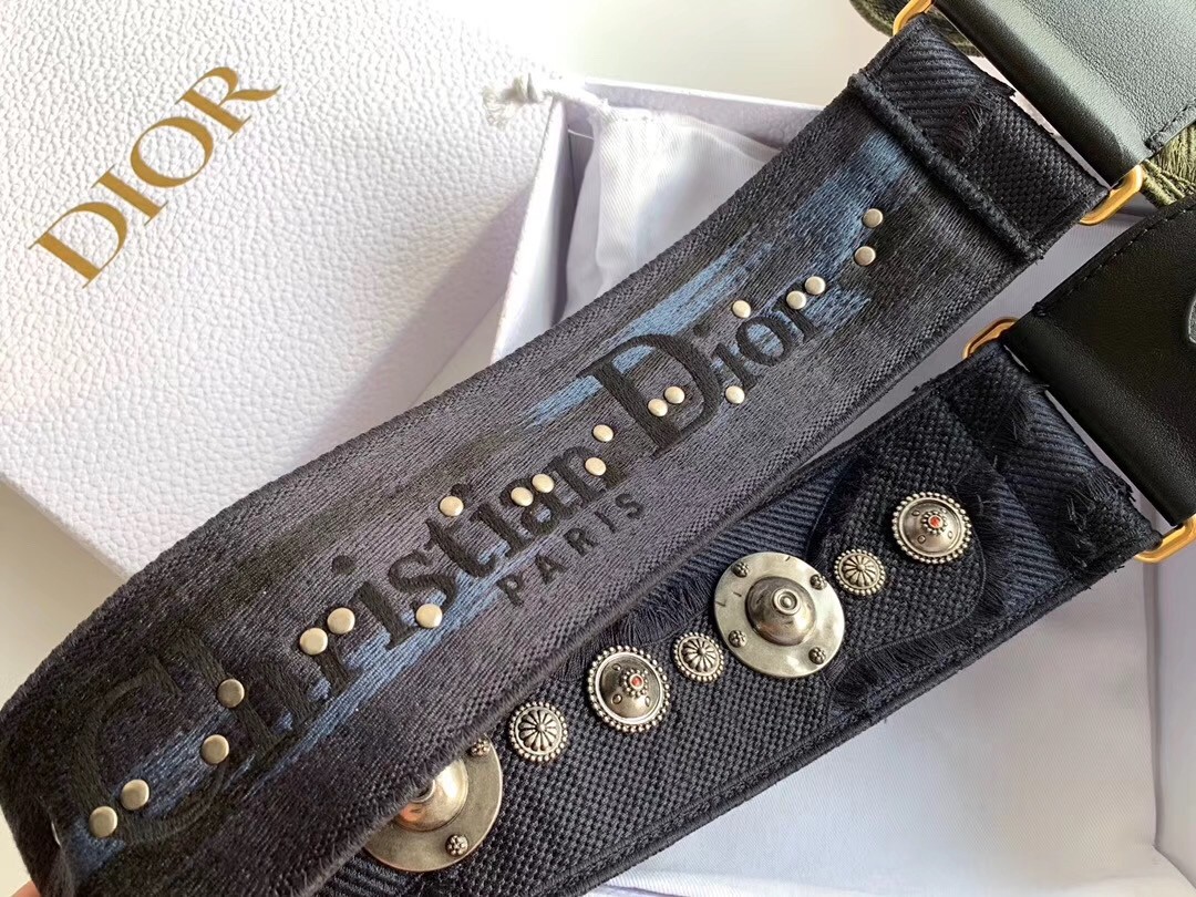 Dior Shoulder Strap In Blue Camouflage Embroidered Canvas