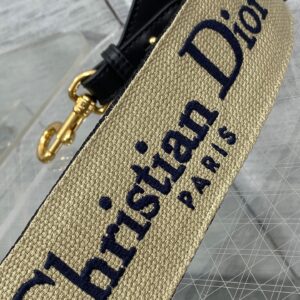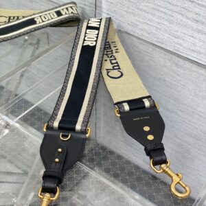 Dior Shoulder Strap with Ring in Black Embroidery Canvas