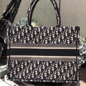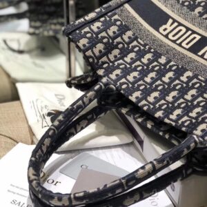 Dior Small Book Tote Bag In Blue Oblique Canvas