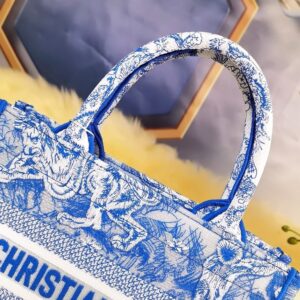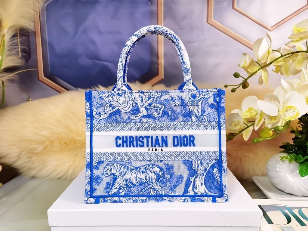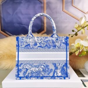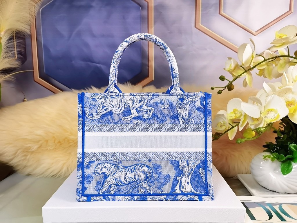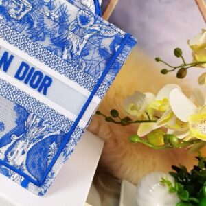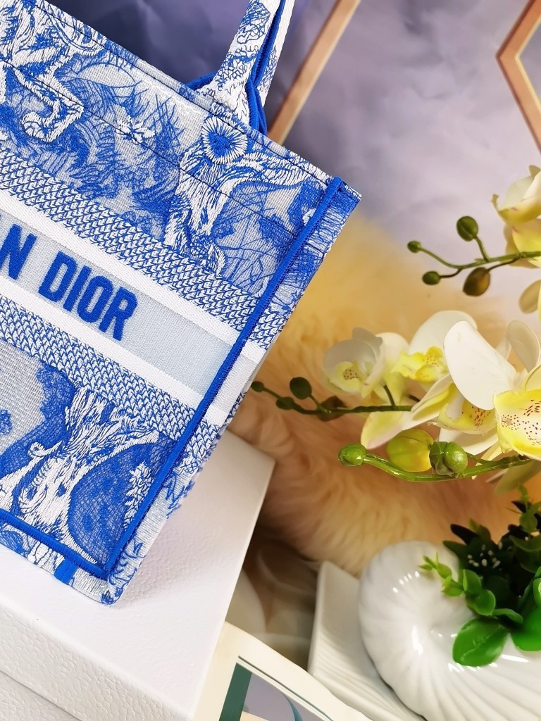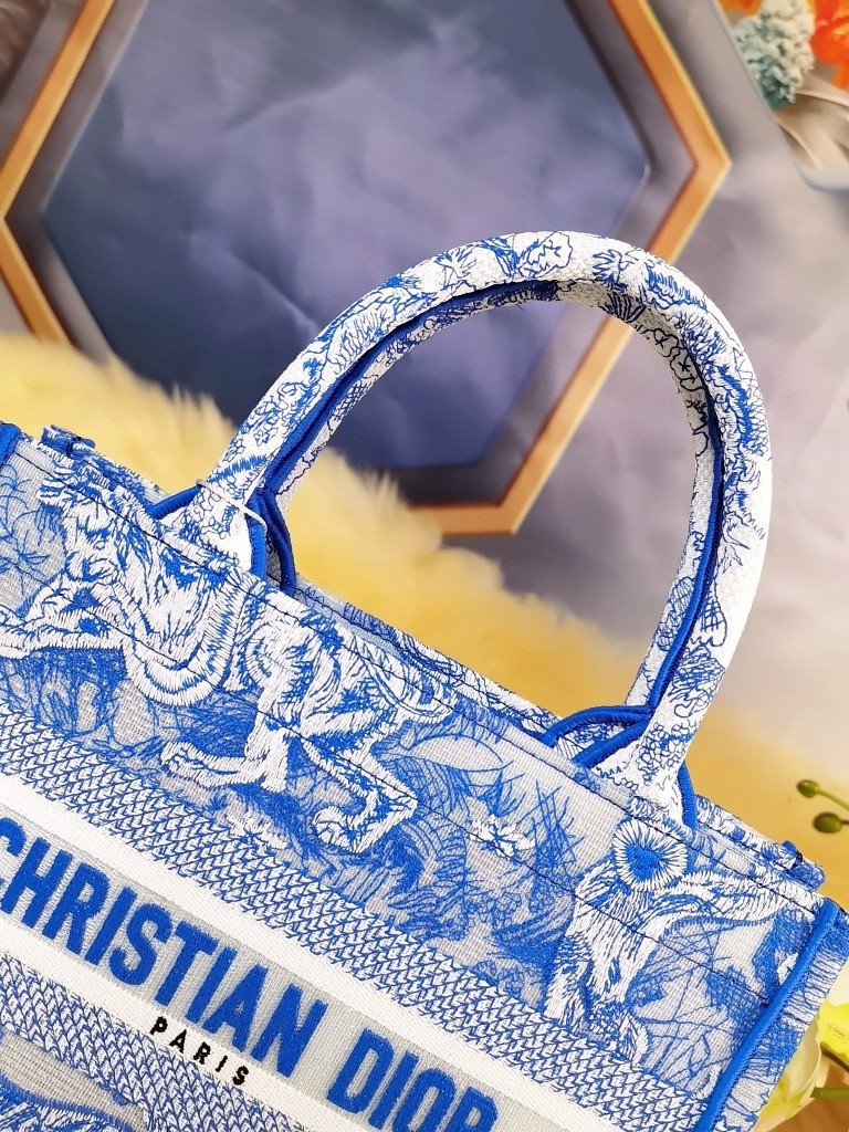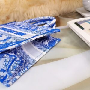 Dior Small Book Tote Bag In Blue Transparent Toile de Jouy Canvas