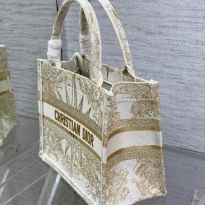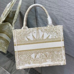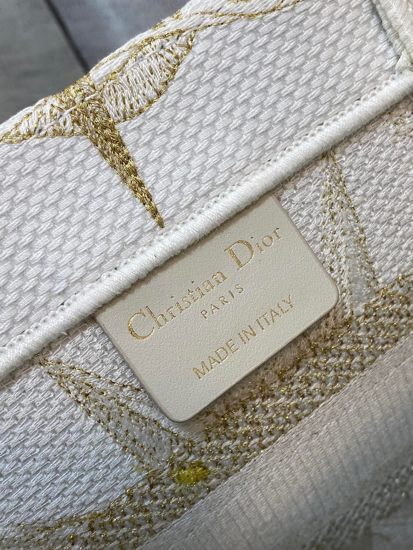 Dior Small Book Tote Bag In Gold Rêve d’Infini Embroidery