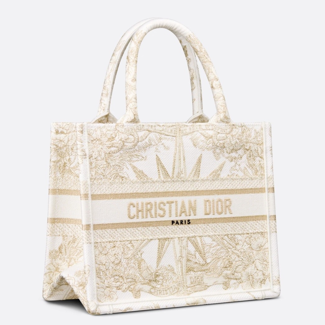 Dior Small Book Tote Bag In Gold Rêve d'Infini Embroidery